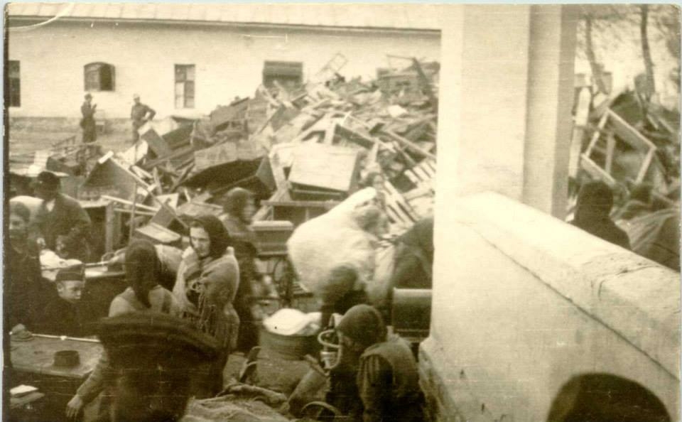 A helyi lakosság széthordja a gettóból az ottmaradt holmikat, miután a zsidókat 1944. június 17-én átszállították a debreceni gyűjtőtáborba.