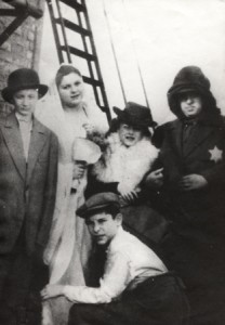 Csoportkép a gettóban, egyikük mellén sárga csillag