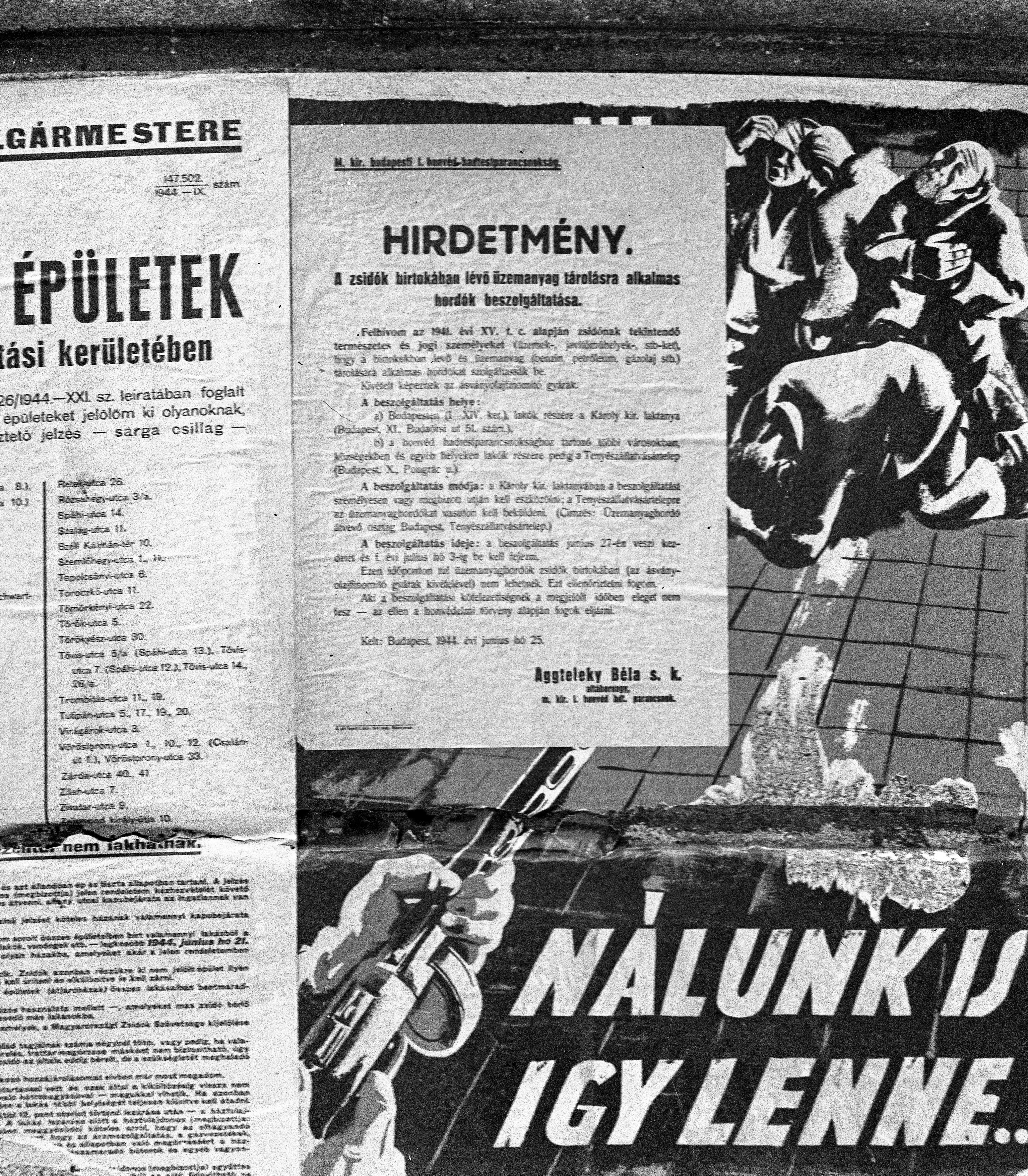 Photo of a poster of the Budapest mayoral announcement of 25 June 1944. All fuel drums in Jewish ownership must be surrendered to the military by 27 June.