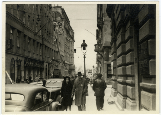 Sárga csillagot viselő zsidó férfi keresztény nővel a pesti Belvárosban