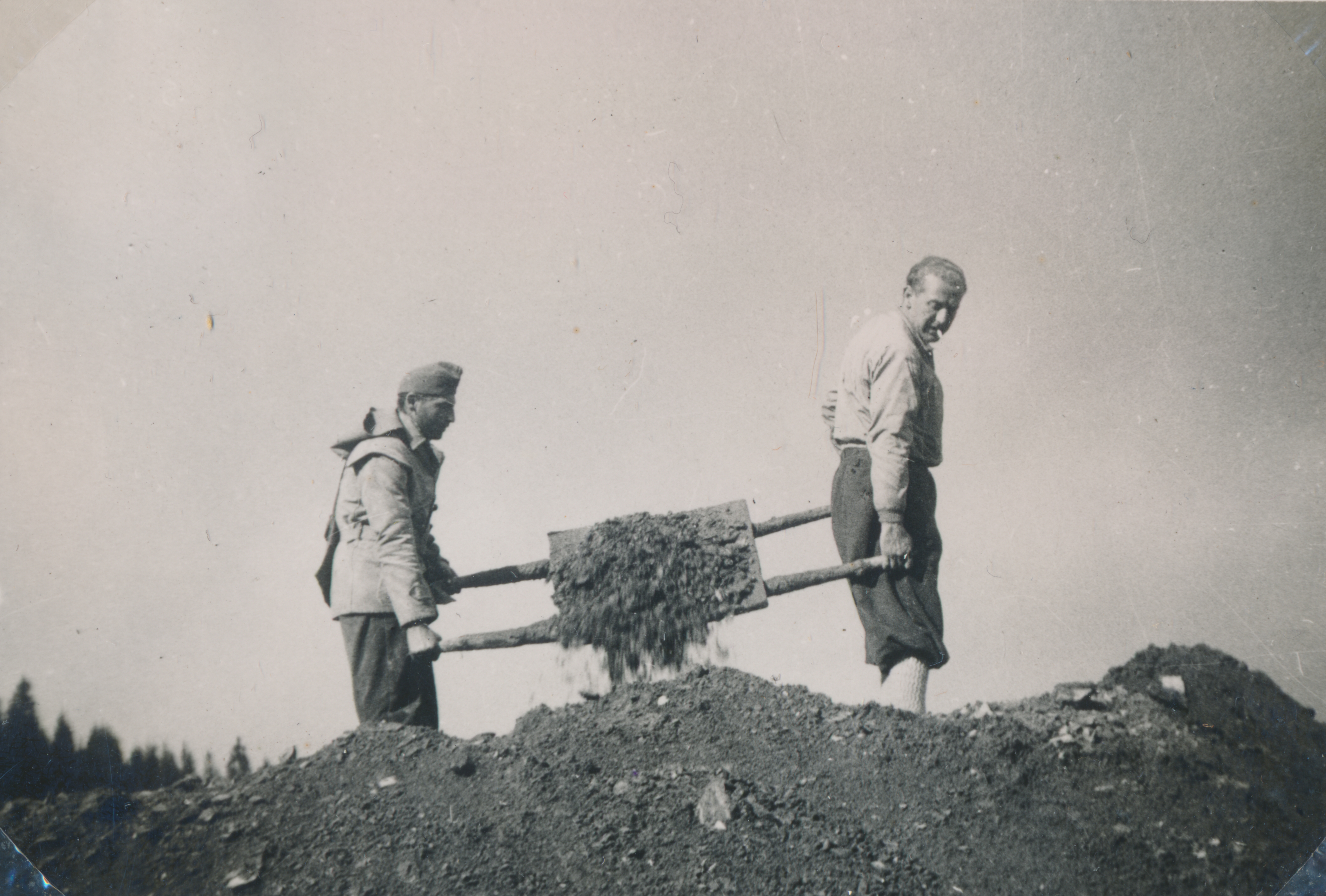 Két munkaszolgálatos földet hord