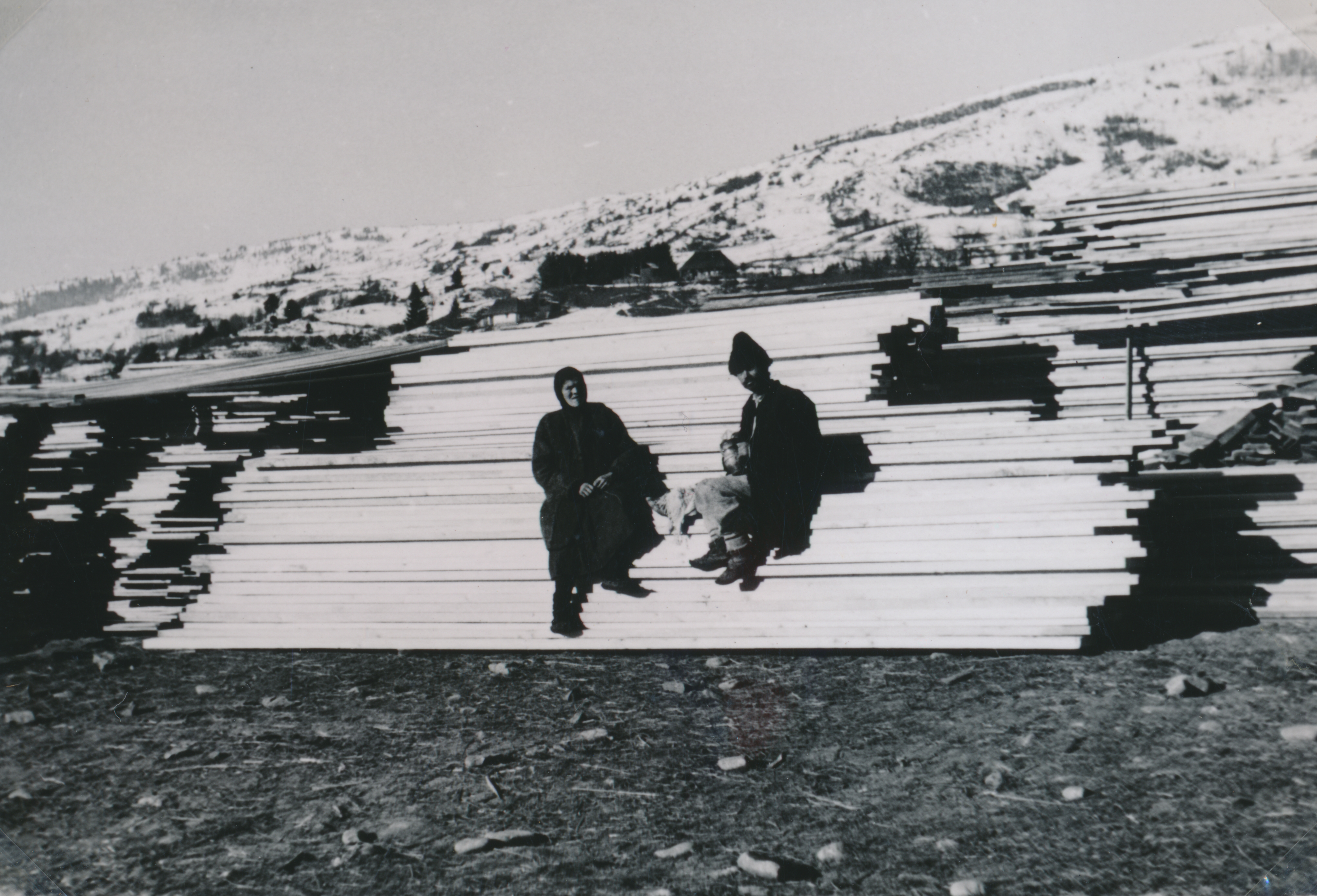 Deszkákon ülő parasztasszony és férfi