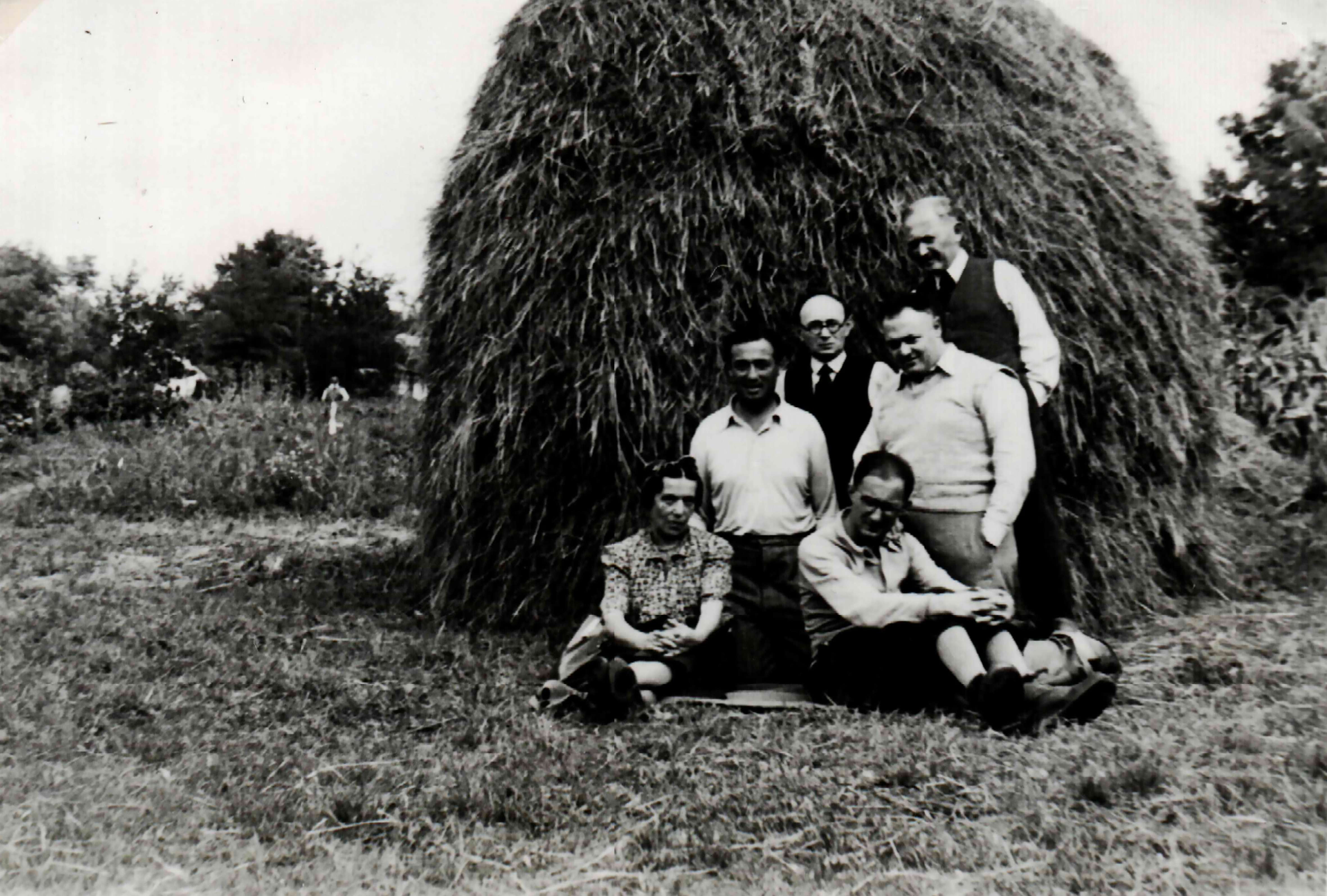 Munkaszolgálatosok és látogatóik egyszénabálánál Dabason