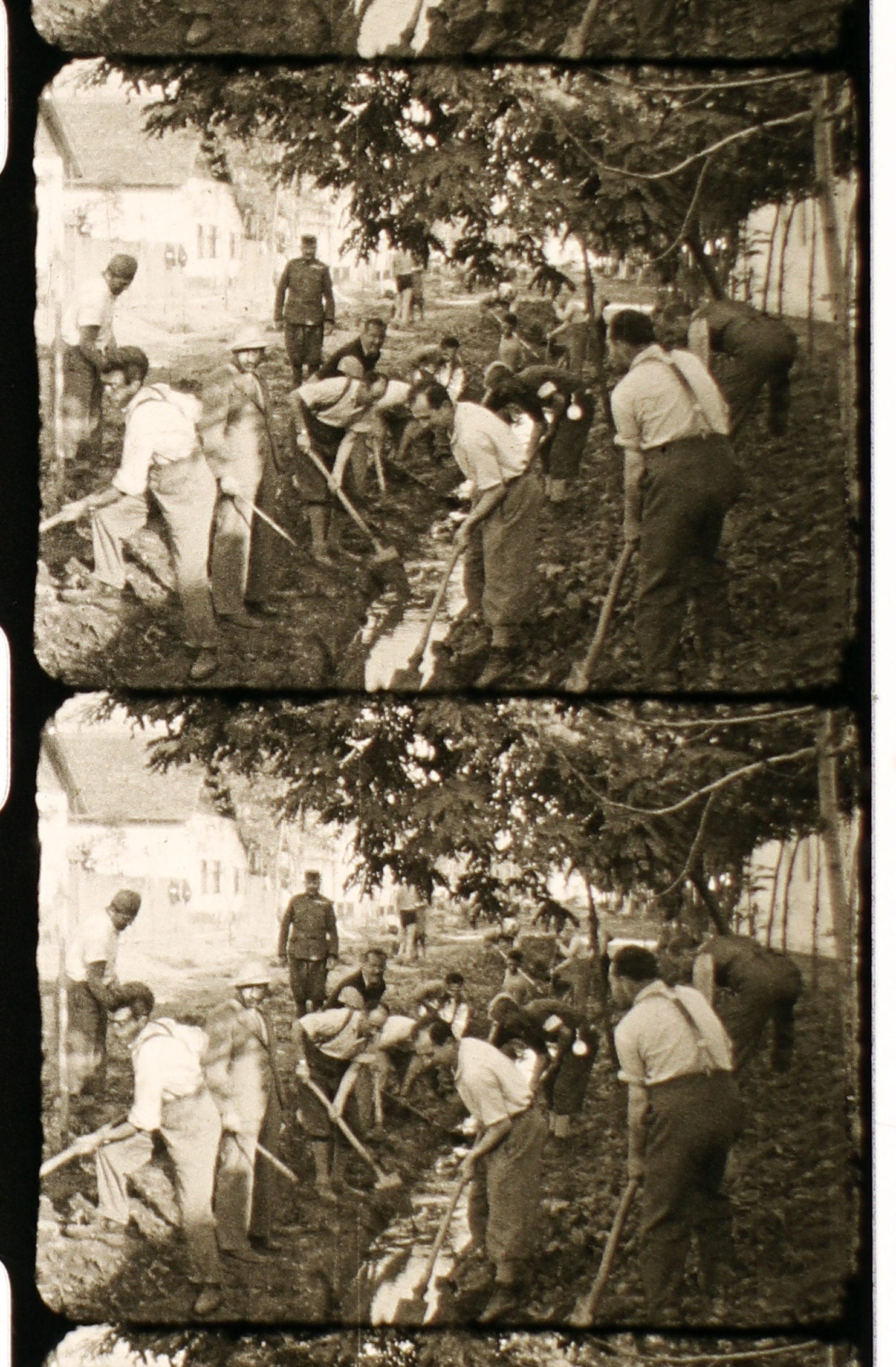 Munkaszolgálatosok egy fa alatt árkot ásnak II.