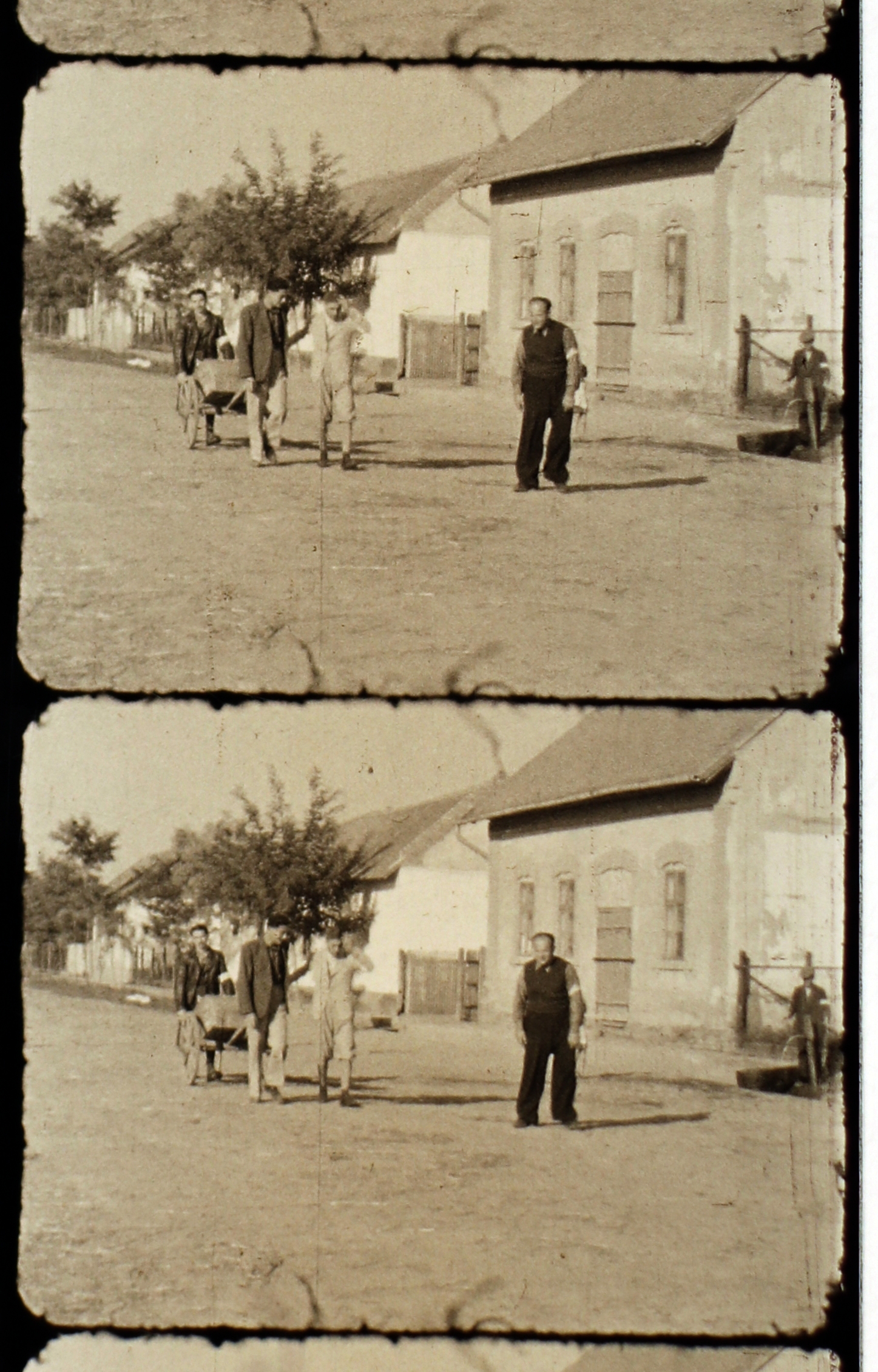 Munkaszolgálatosok kézikocsit húznak az utca közepén I.