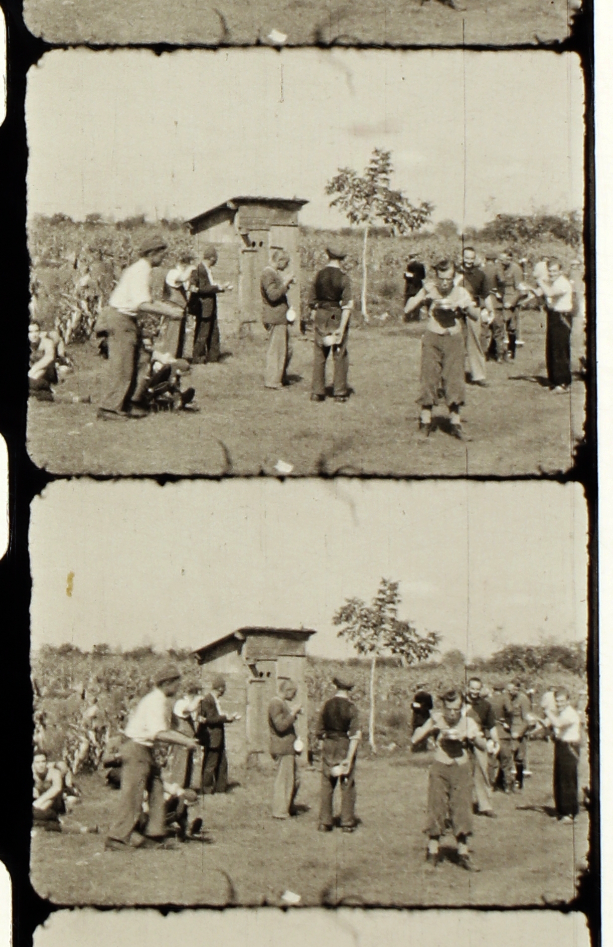 Munkaszolgálatosok esznek a kukoricaföld mellett