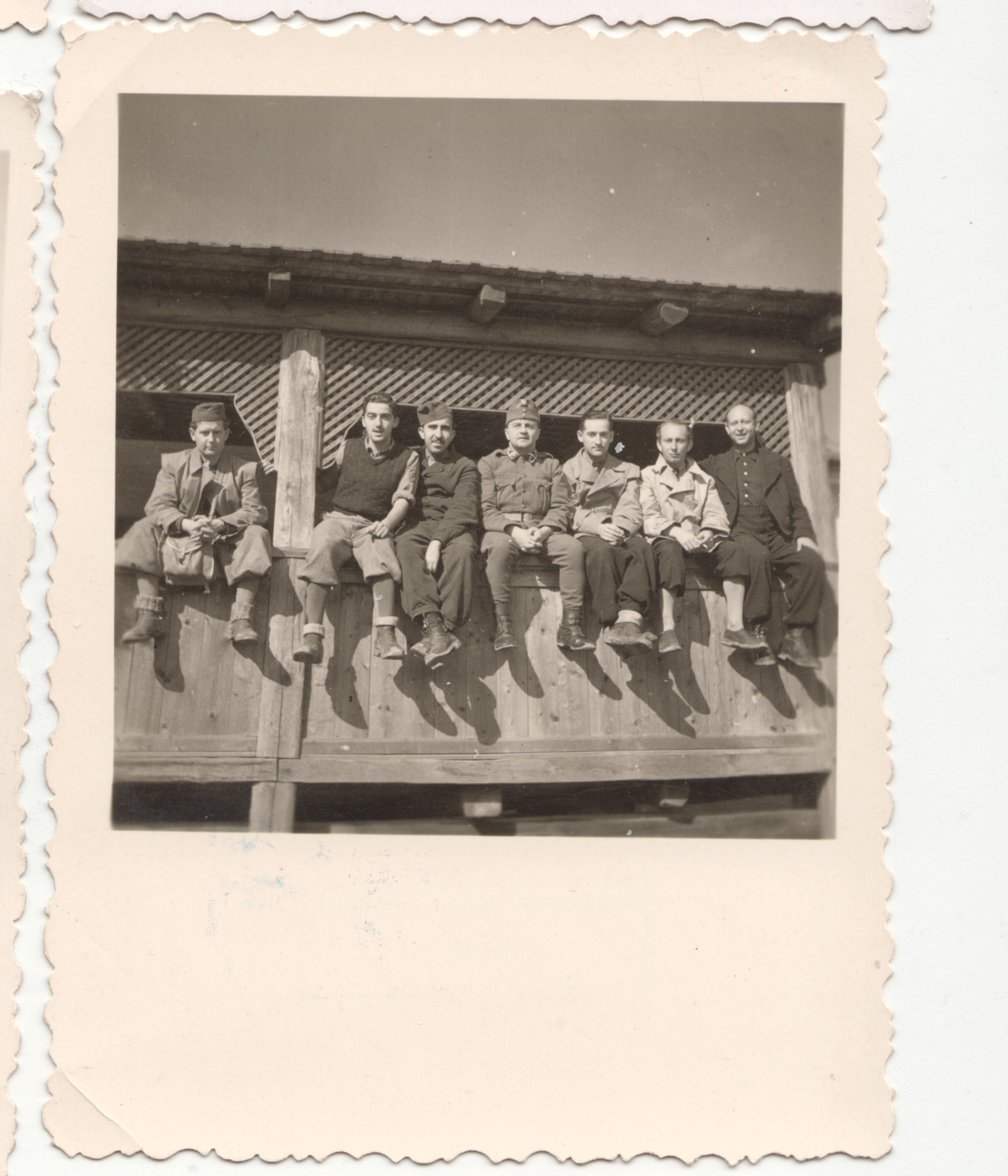 Hét szinérváraljai munkaszolgálatos egy terasz korlátján pihen