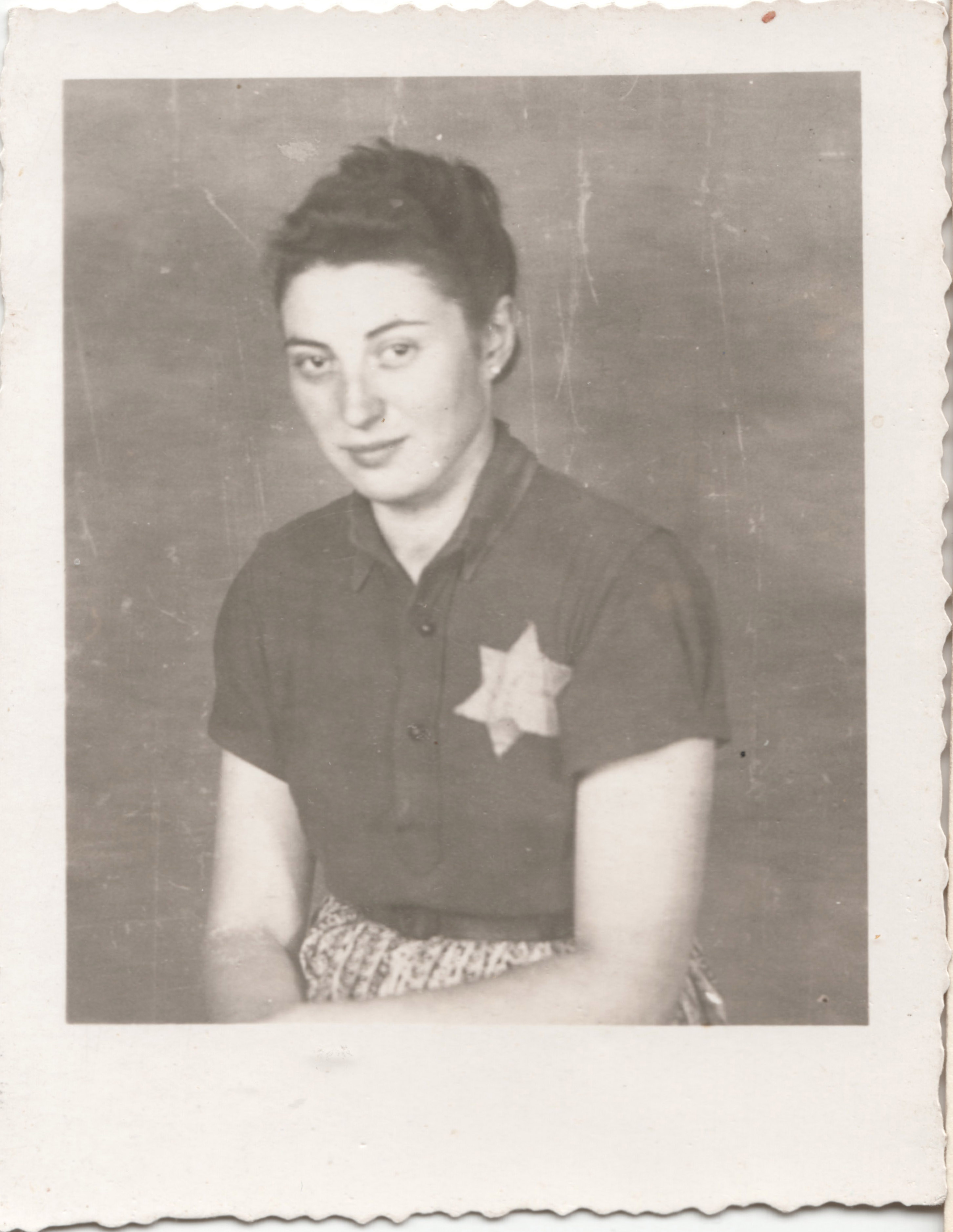 Barabás Árminné sz. Szántó Ilona portréfelvétele, melyen sárga csillagos ruhában látható. Ilona túlélte a vészkorszakot, amit egy 1945 májusában a Vörös Hadseregtől kapott igazolvány bizonyít.