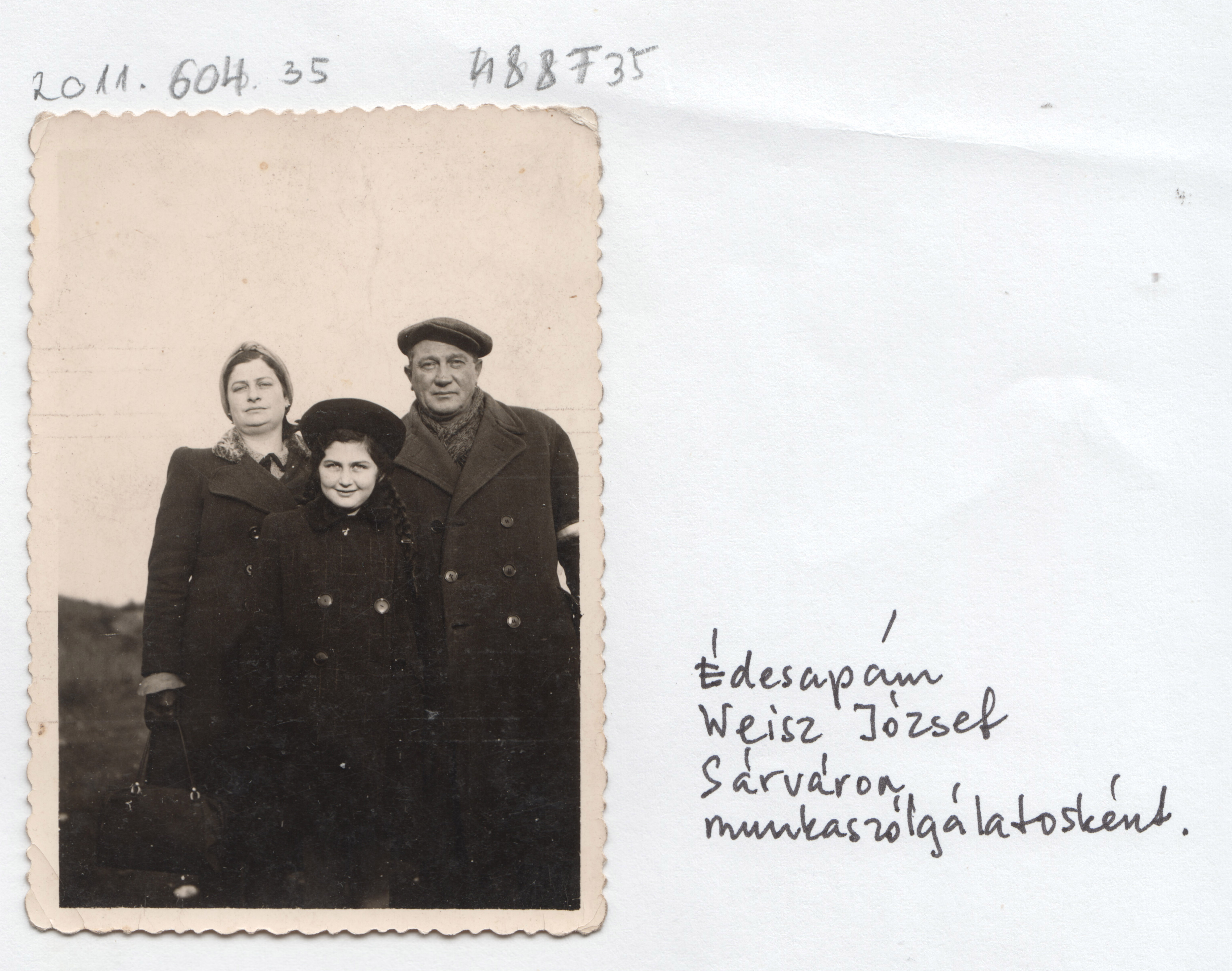 "Édesapám Weisz József Sárváron munkaszolgálatosként."