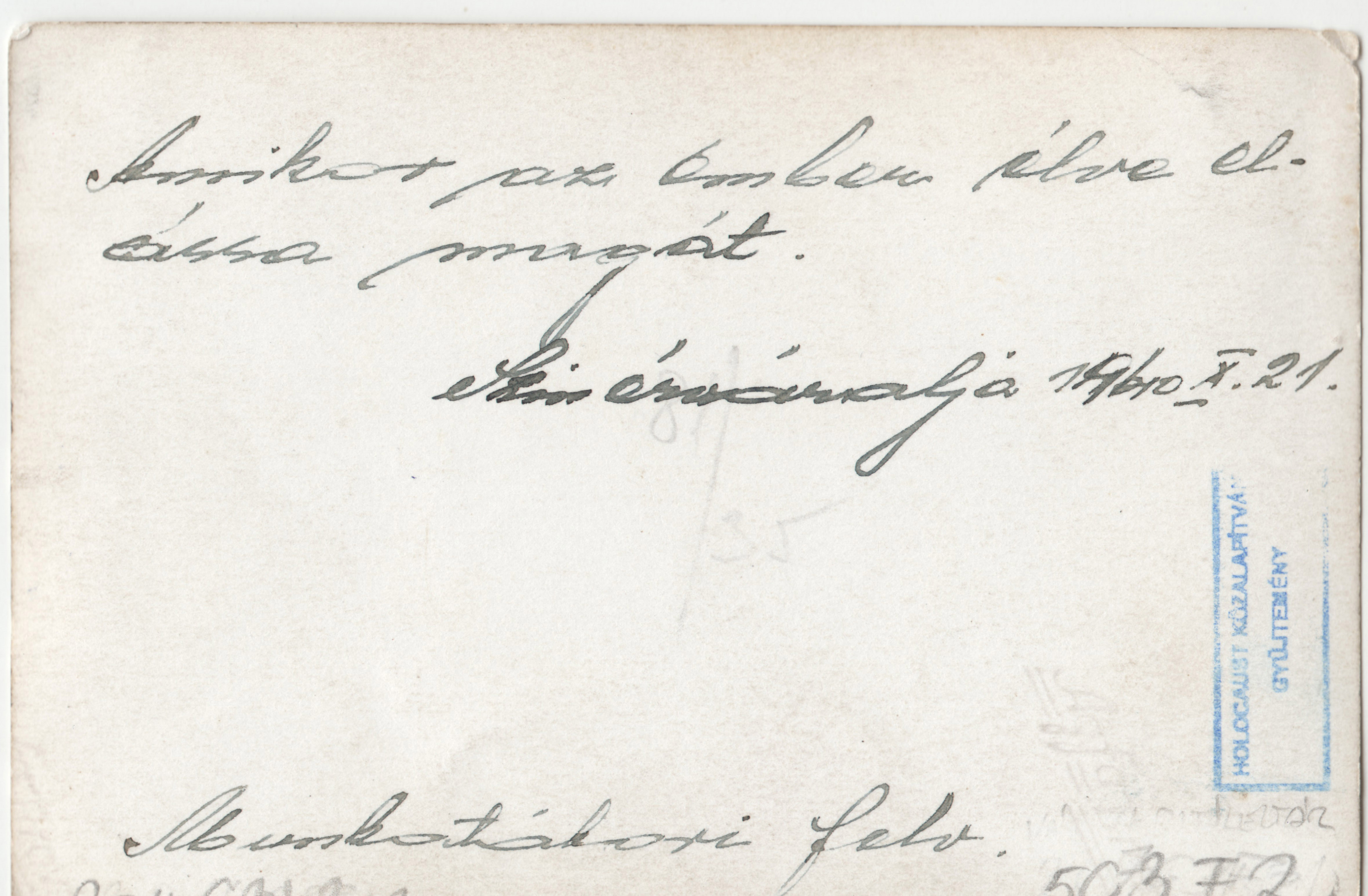 "Amikor az ember élve elássa magát. Szinérváralja 1940.X.21. Munkatábori felv."
