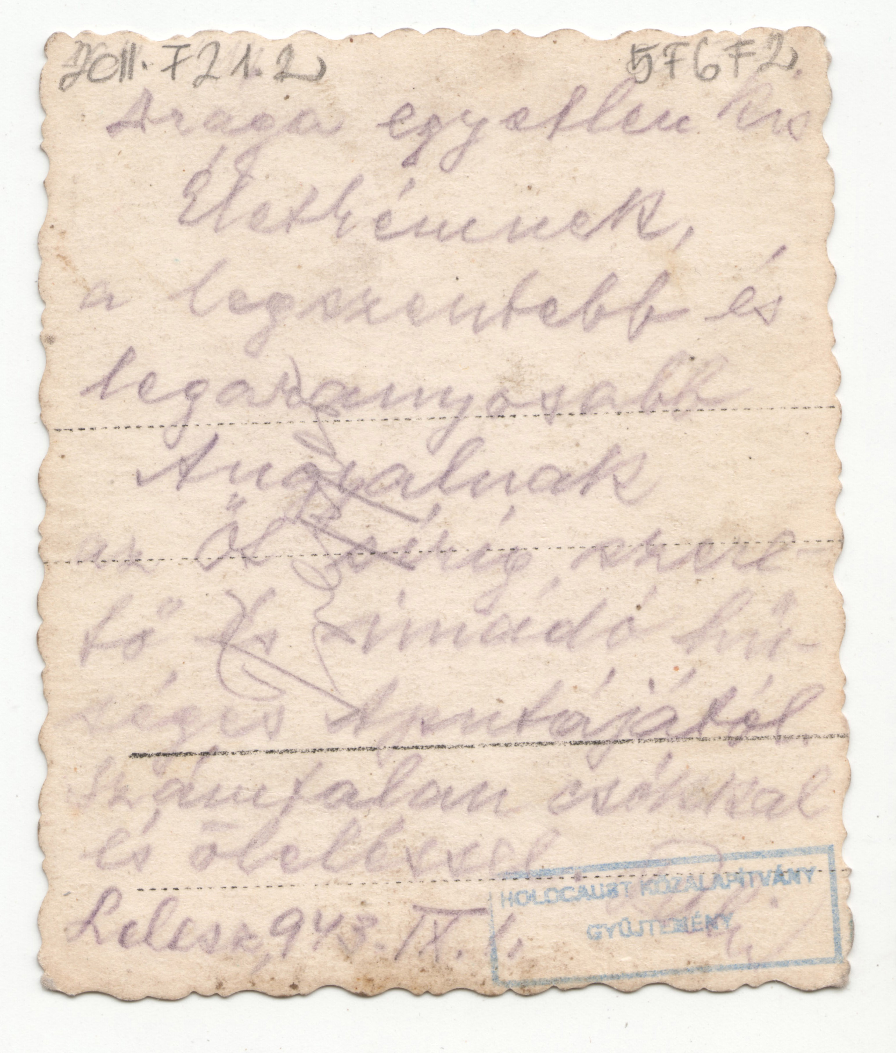 Drága egyetlen kis életkémnek, a legszentebb és legaranyosabb Angyalnak az őt síríg szerető és imádó hűséges Apukájától. Számtalan csókkal és öleléssel. Lelesz, [1]943.IX.1.