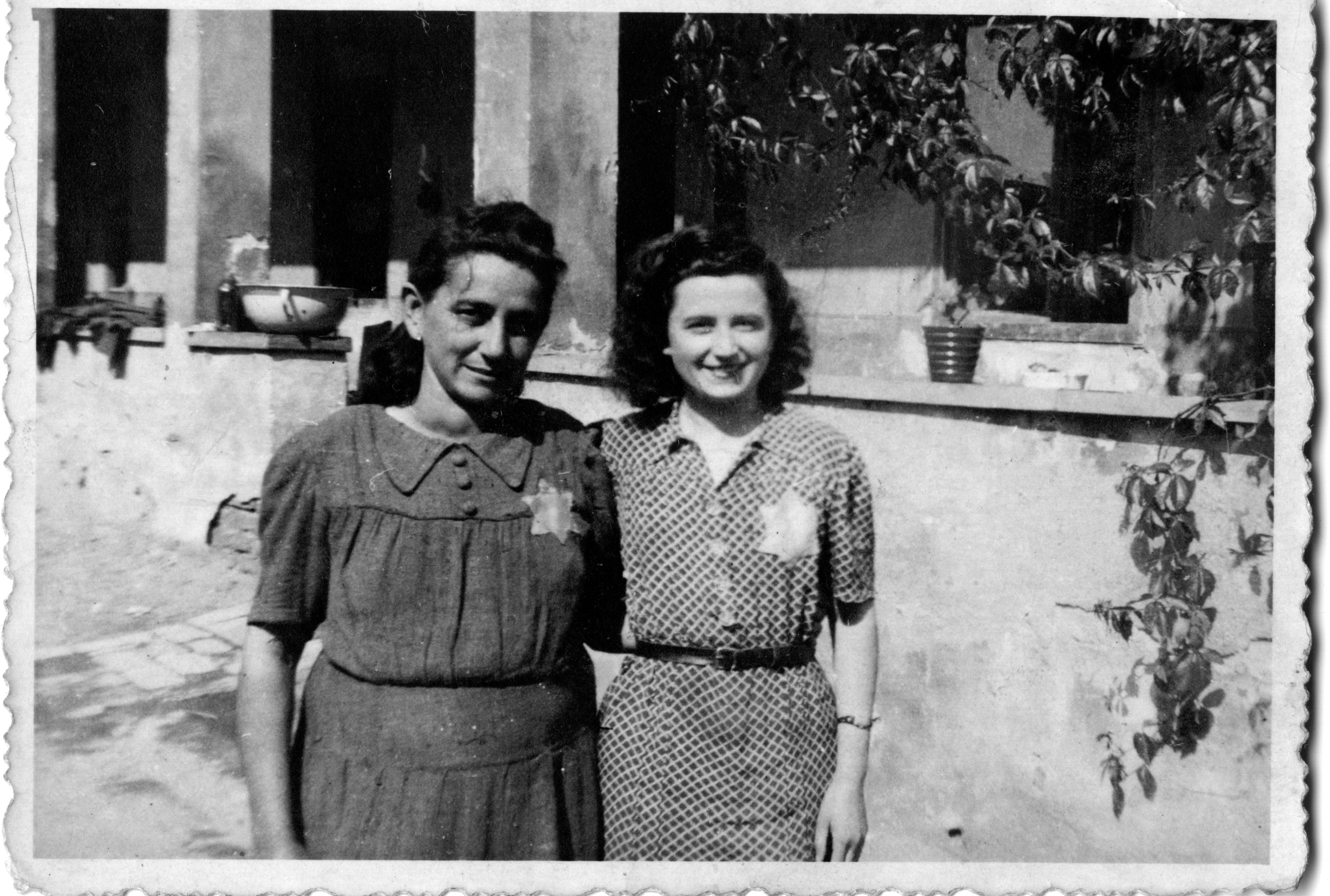 Vörös Béláné és édesanyja ruhájukon sárga csillaggal