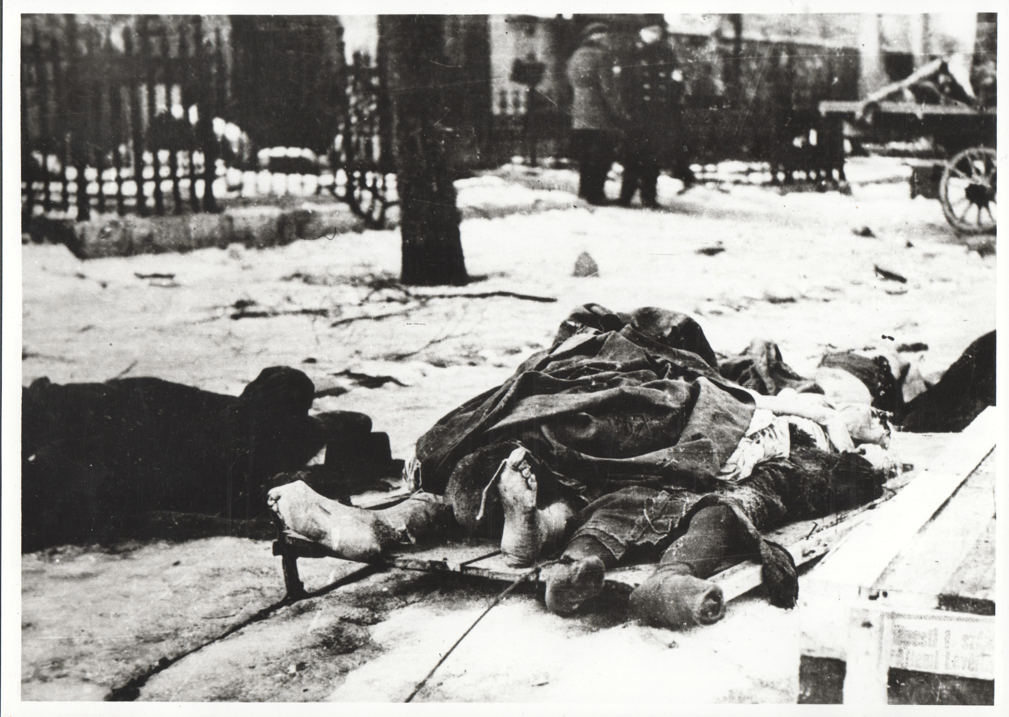 Holttestek raklapon a Dohány utcai zsinagóga mellett