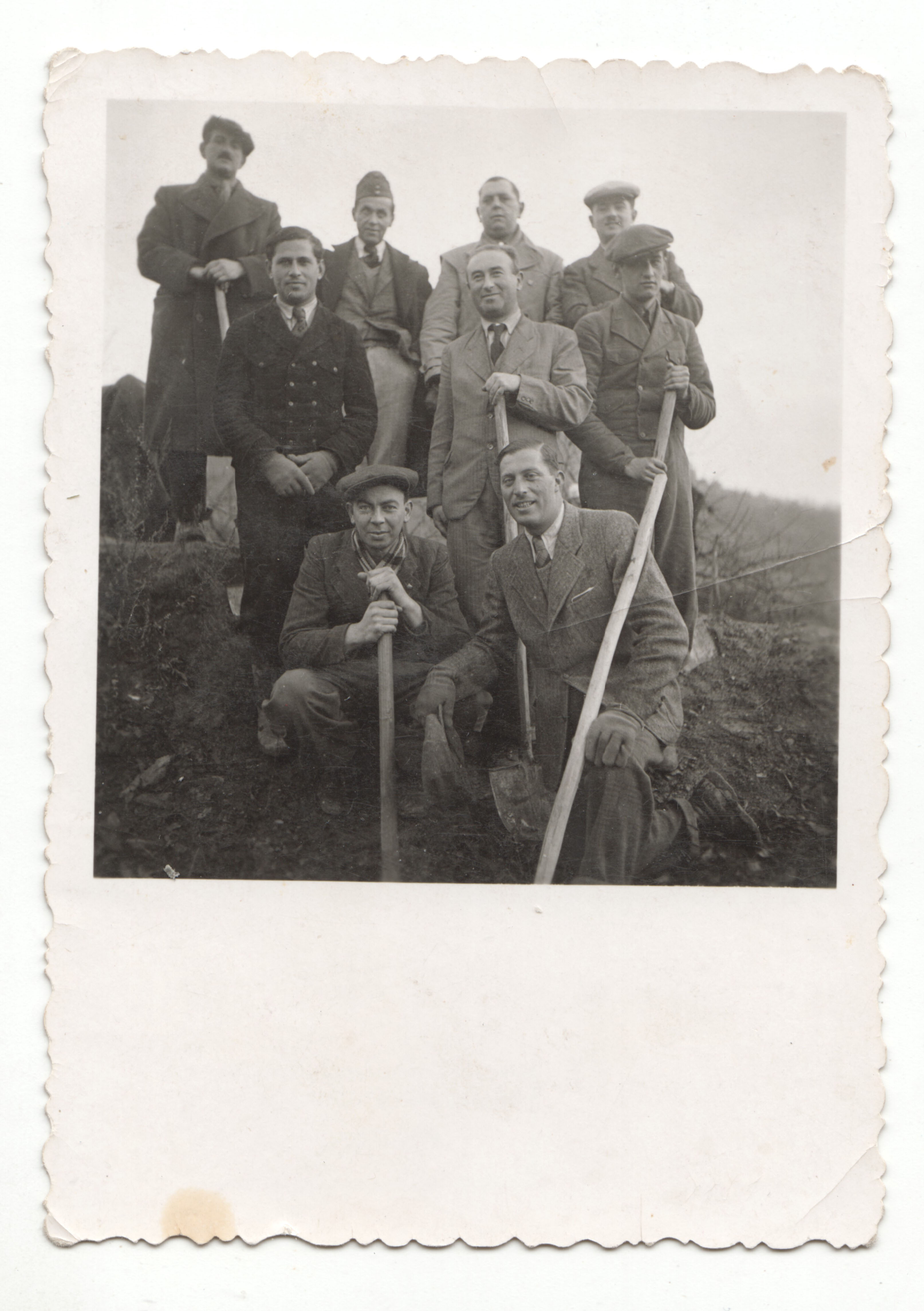 Csoportkép kilenc munkaszolgálatosról köztük Schwarcz Lajos