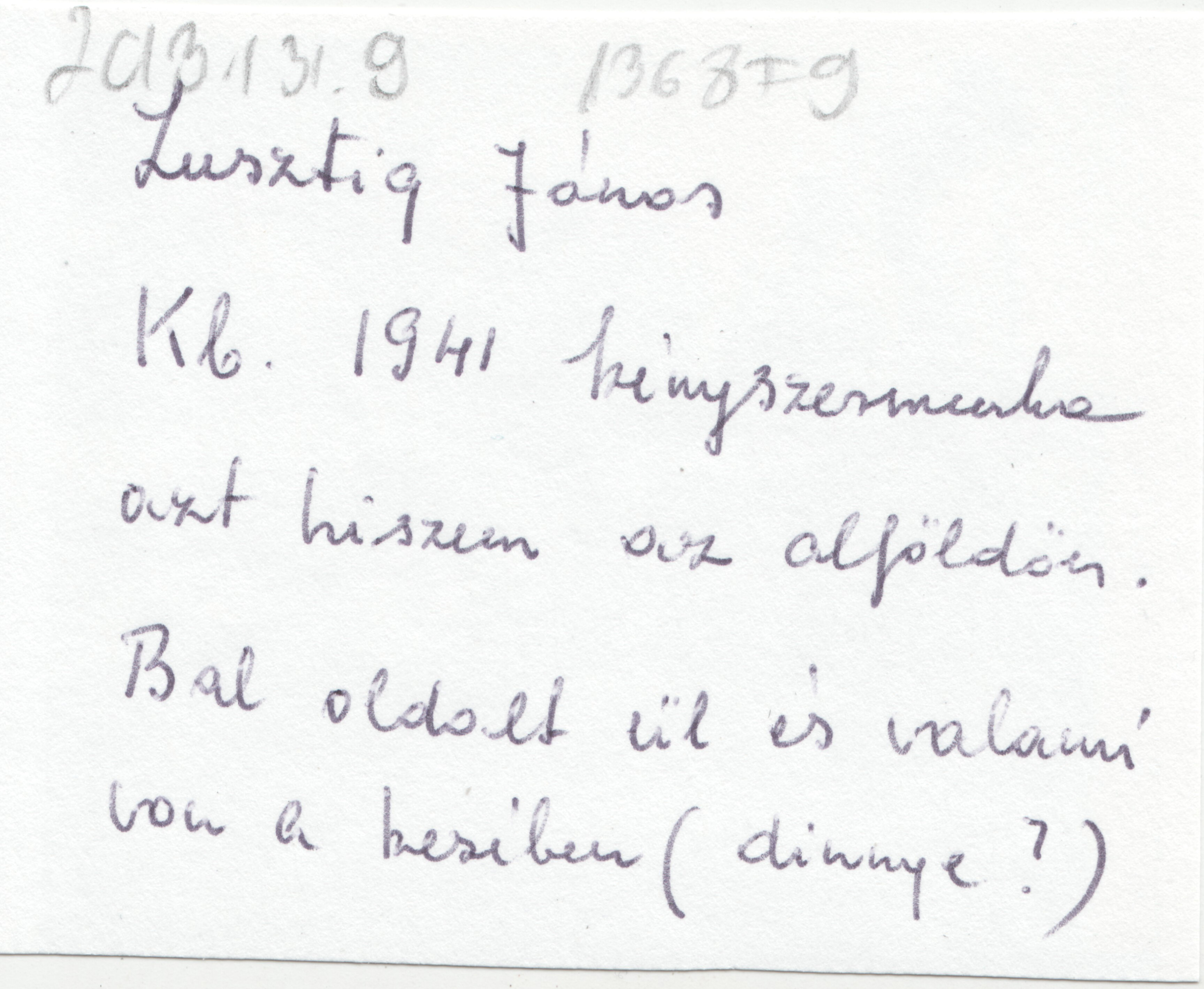 "Lusztig János kb. 1941 kényszermunka azt hiszem az Alföldön. Bal oldalt ül és valami van a kezében (dinnye?)."