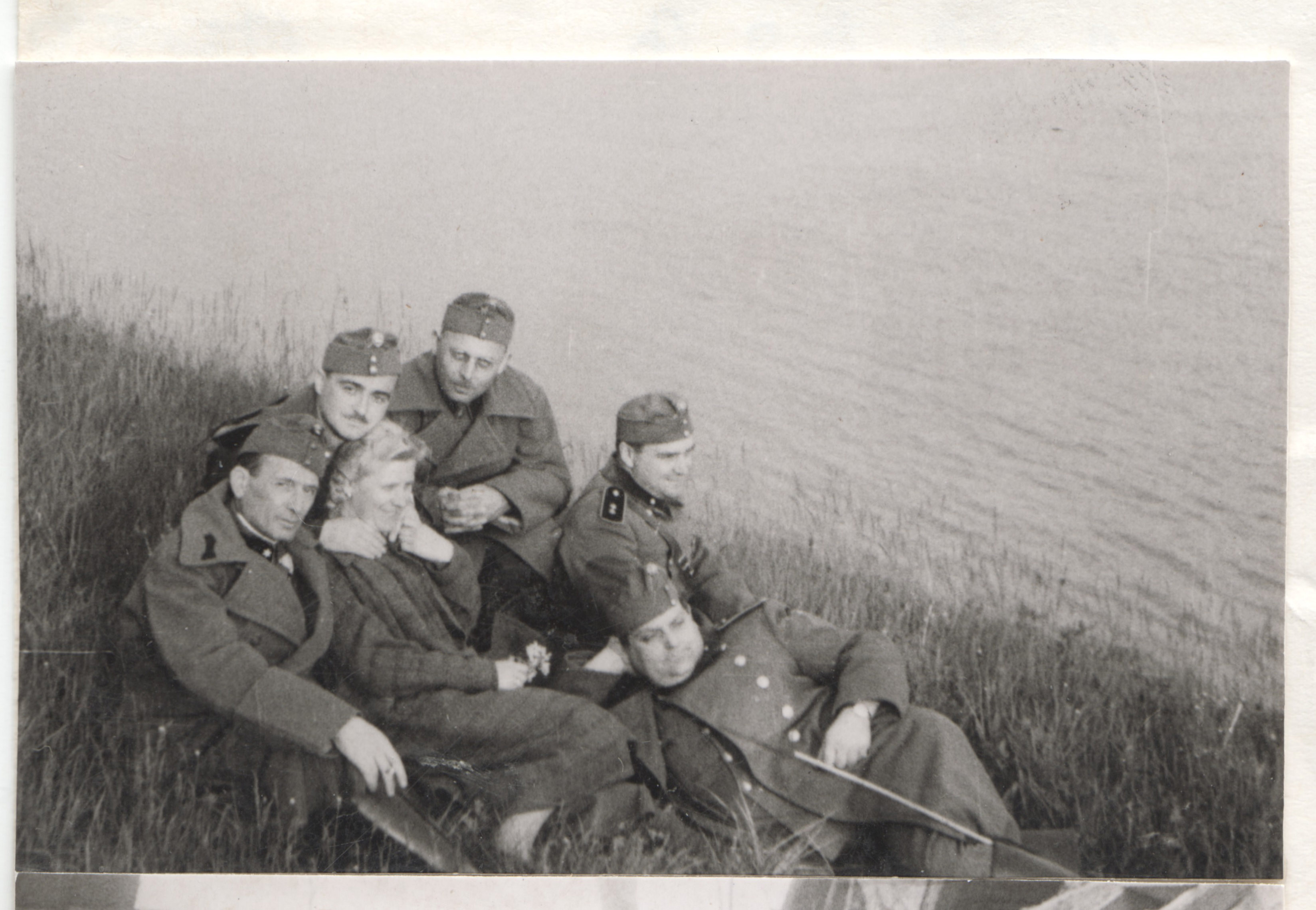 Munkaszolgálatosok és egy nő egy folyó partján