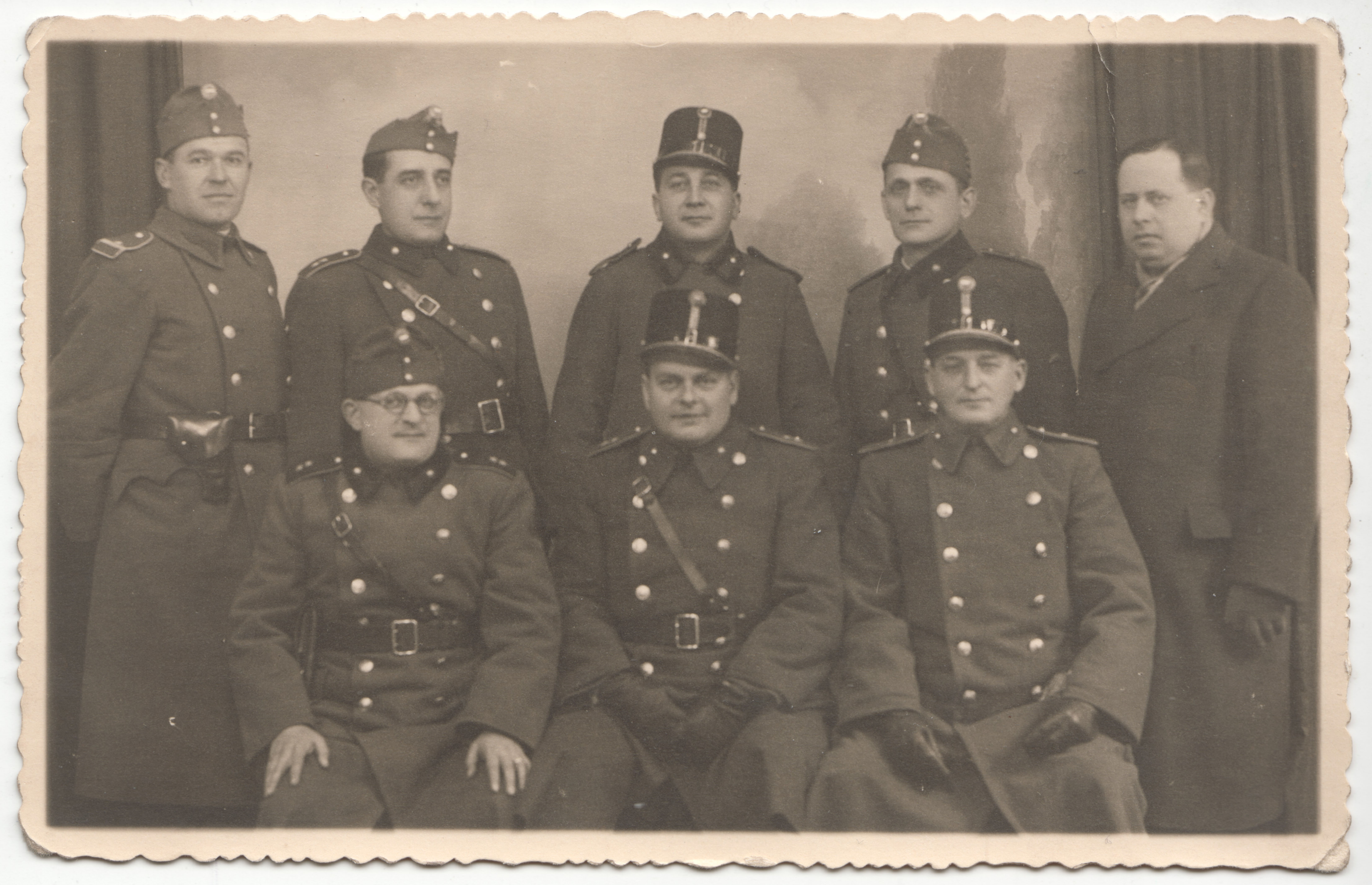 Alsó, ülő sorban jobbról a első személy Dr. Skutecky József főhadnagy. Skutecky (1894-?) gödöllői lakos volt, bíró, főhadnagy, a M. Kir. 109/31. tábori munkásszázad parancsnokaként teljesített szolgálatot.