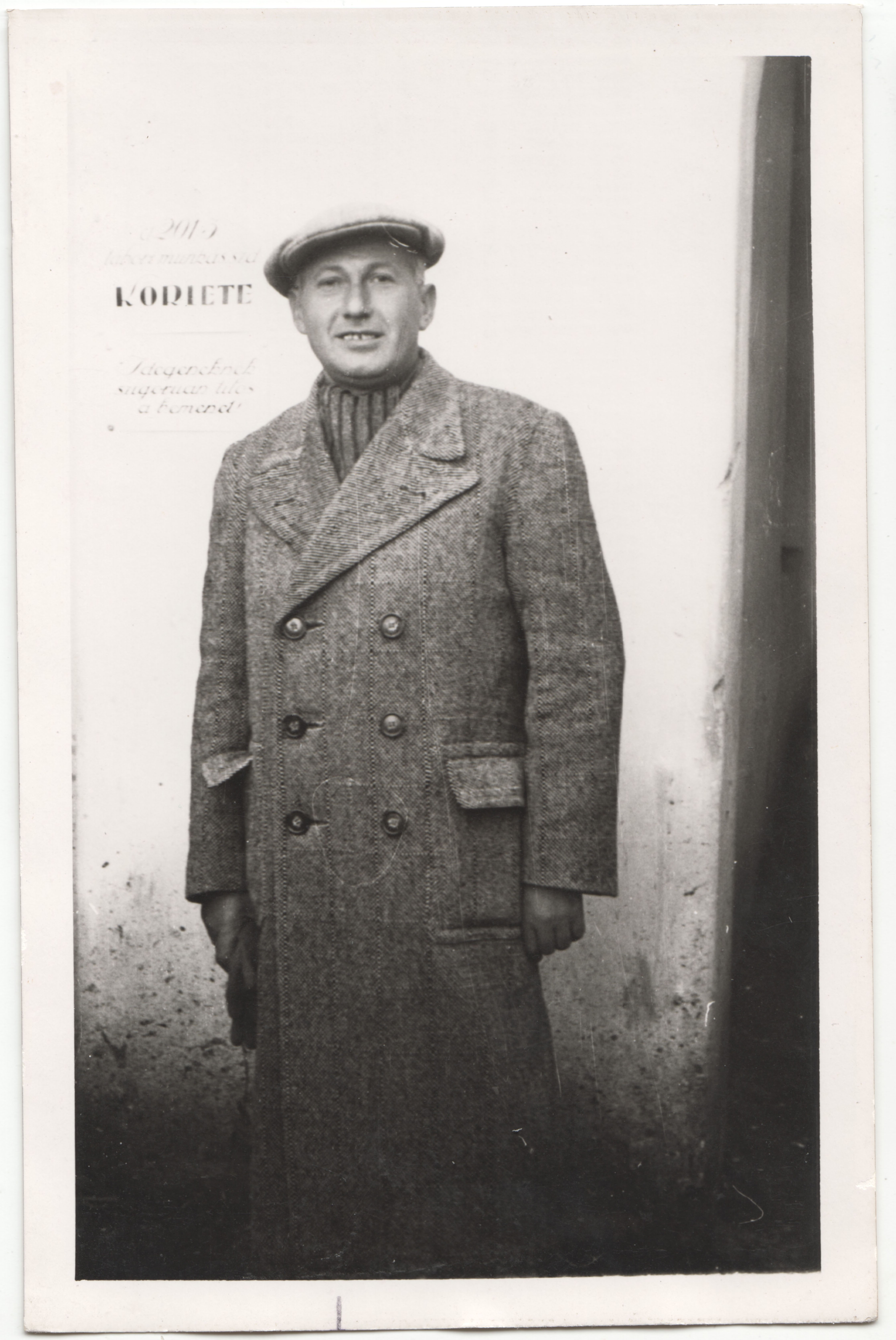 Herskovits József volt munkaszolgálatos egy egykori munkásszázad felirata előtt