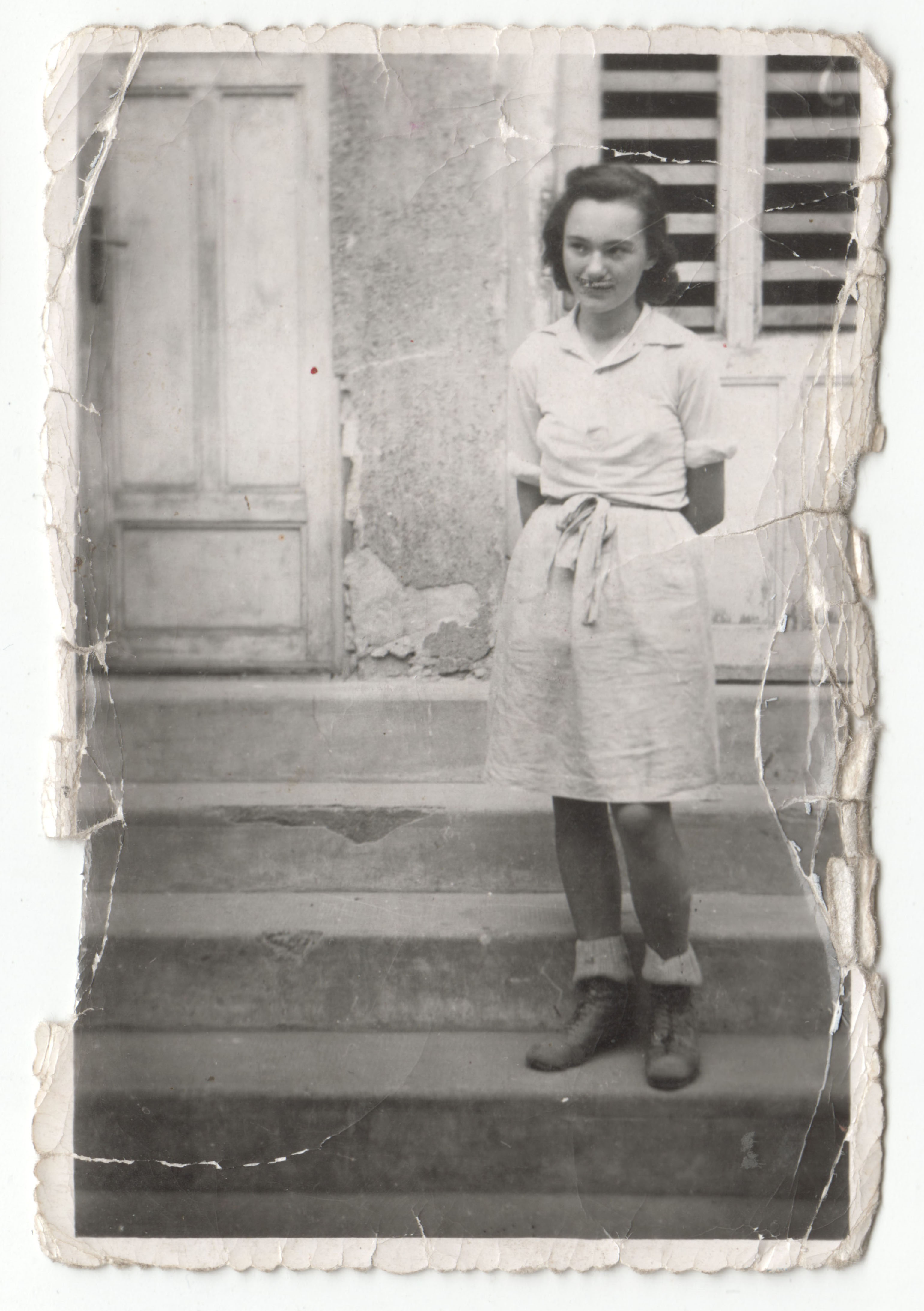 Hátoldalán kézzel írt szöveg: "Verám utolsó fényképe. 1944 nyarán, mint romeltakarító."