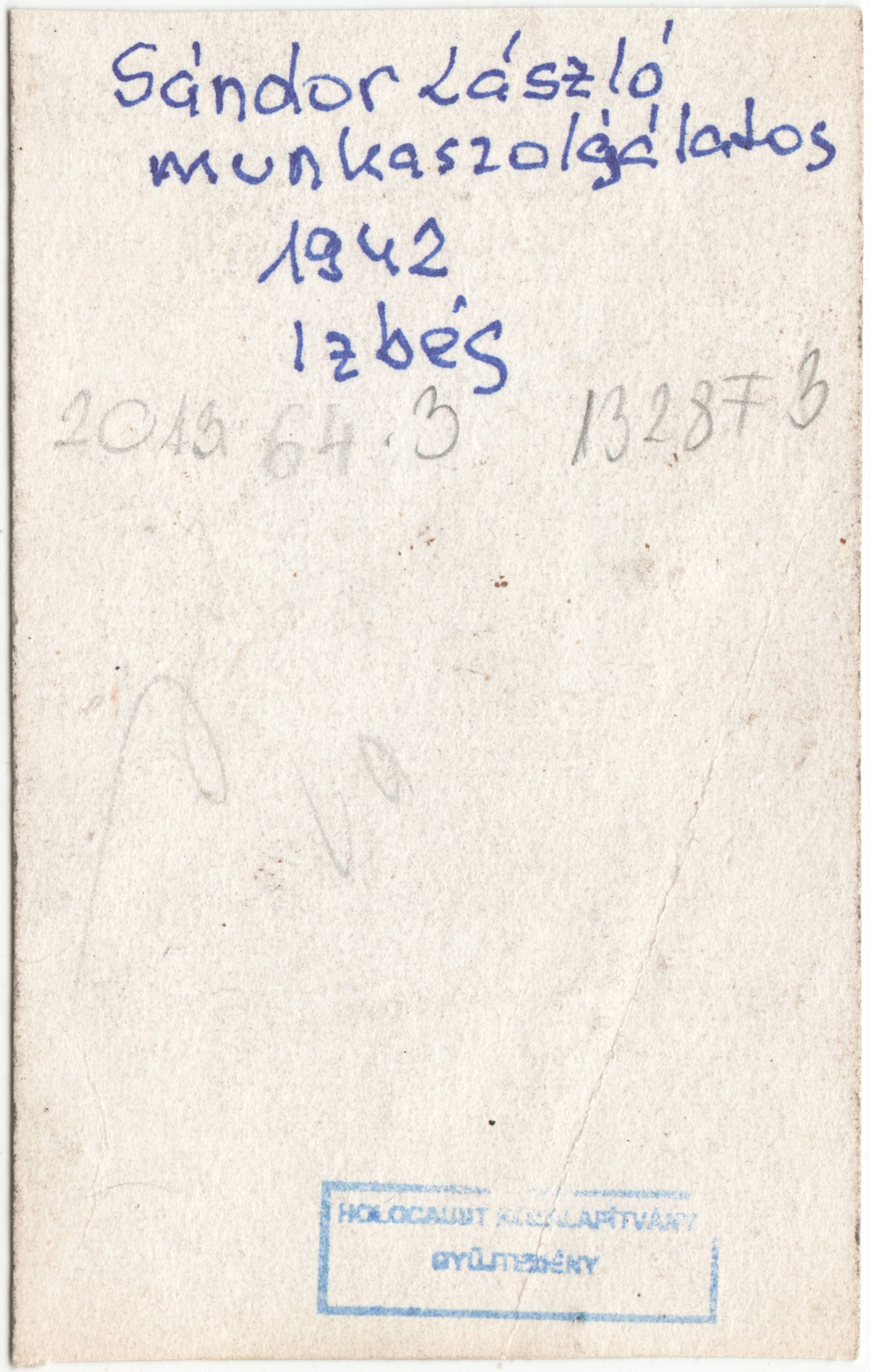 Sándor László munkaszolgálatos kép hátoldalán kézzel írt szöveg