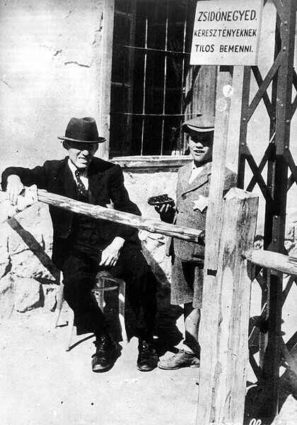 Sárga csillagos férfi őrzi a zalaegerszegi gettó egyik bejáratát