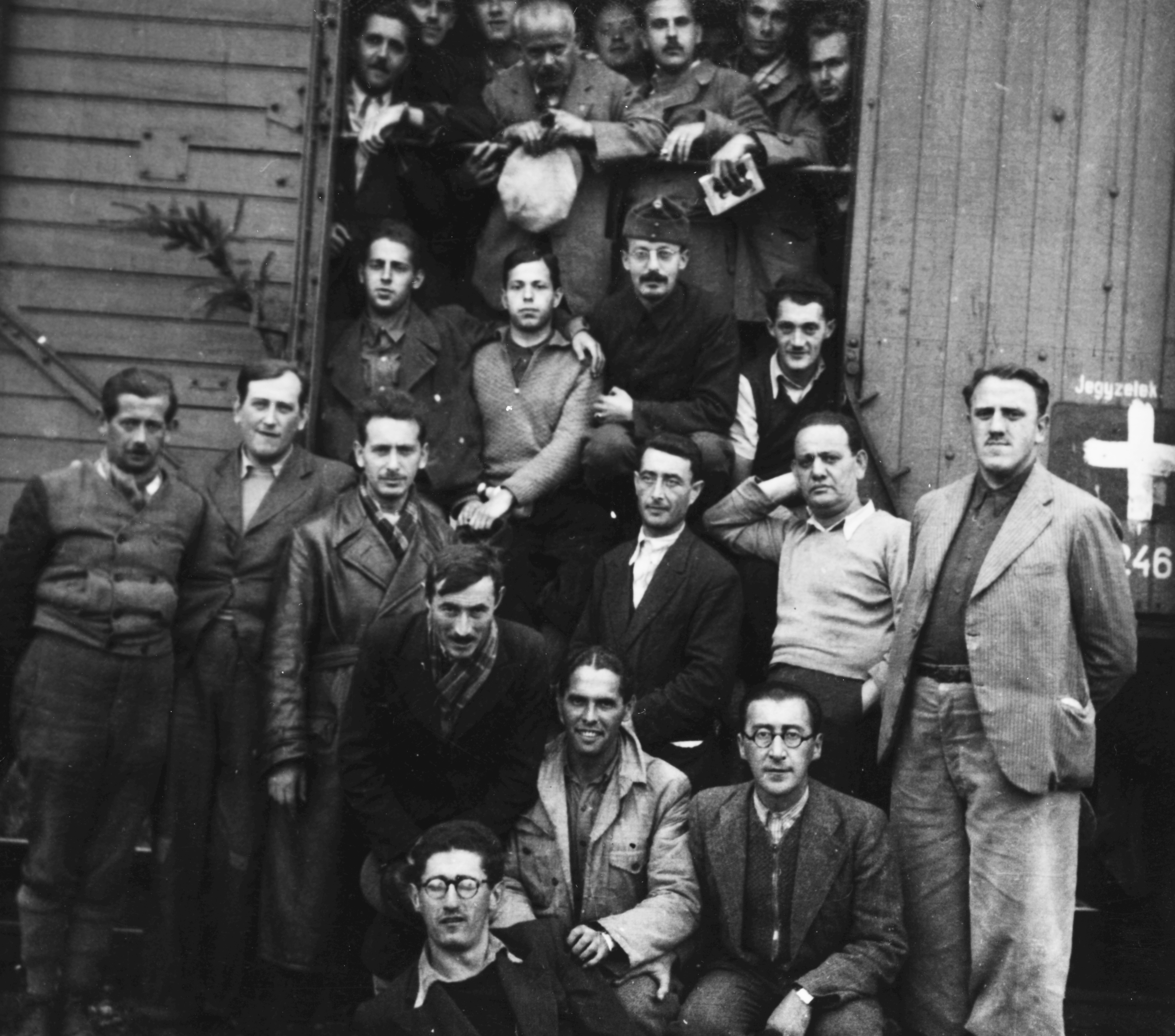 Erdélyi munkaszolgálatosok csoportképe a vagonban