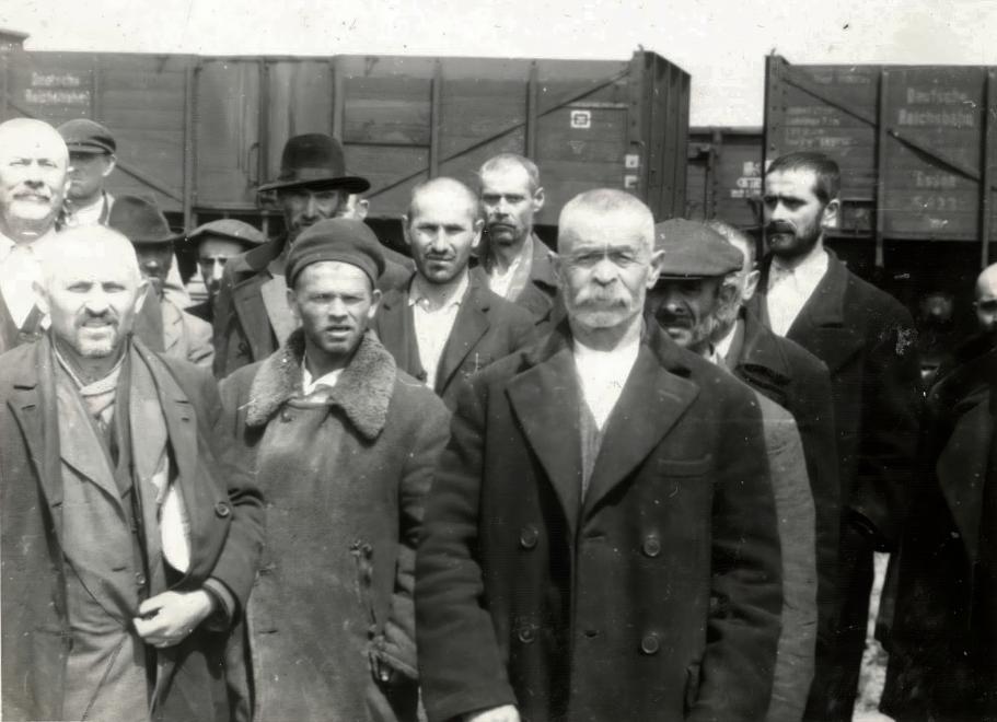 Férfiak megérkezés után, Auschwitz-Birkenau