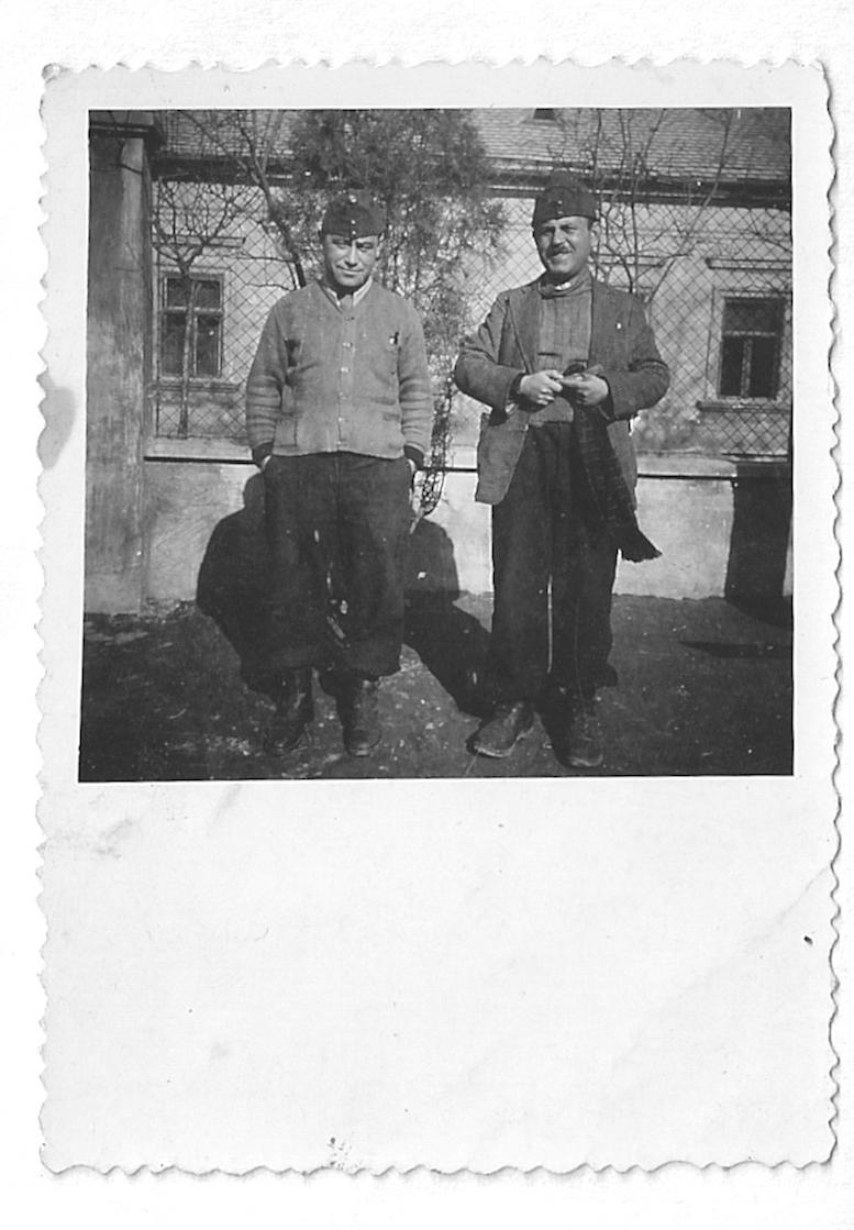 A kép valószínűleg Kassán készült 1943. márciusában apámról, Popper Istvánról (a képen jobb oldalon) és nagybáttyámról, vagyis öccséról, Popper Györgyről. Mindkettő budapesti lakos volt. Anyjuk, özv. Popper Vilmosné kisáruház tulajdonos volt a Róbert Károly körút és a Tar utca 10. sarkán álló épületben. Apám 1910-ben született, öccse pedig 1913-ban. 1942 novemberében hívták be őket. 1944 februárjában estek hadifogságba a Pripet mocsarak környékén. 1945 novemberében tértek vissza Cseljabinszkból. Peter Pastor, Ph.D. Professor Emeritus of History Montclair State University