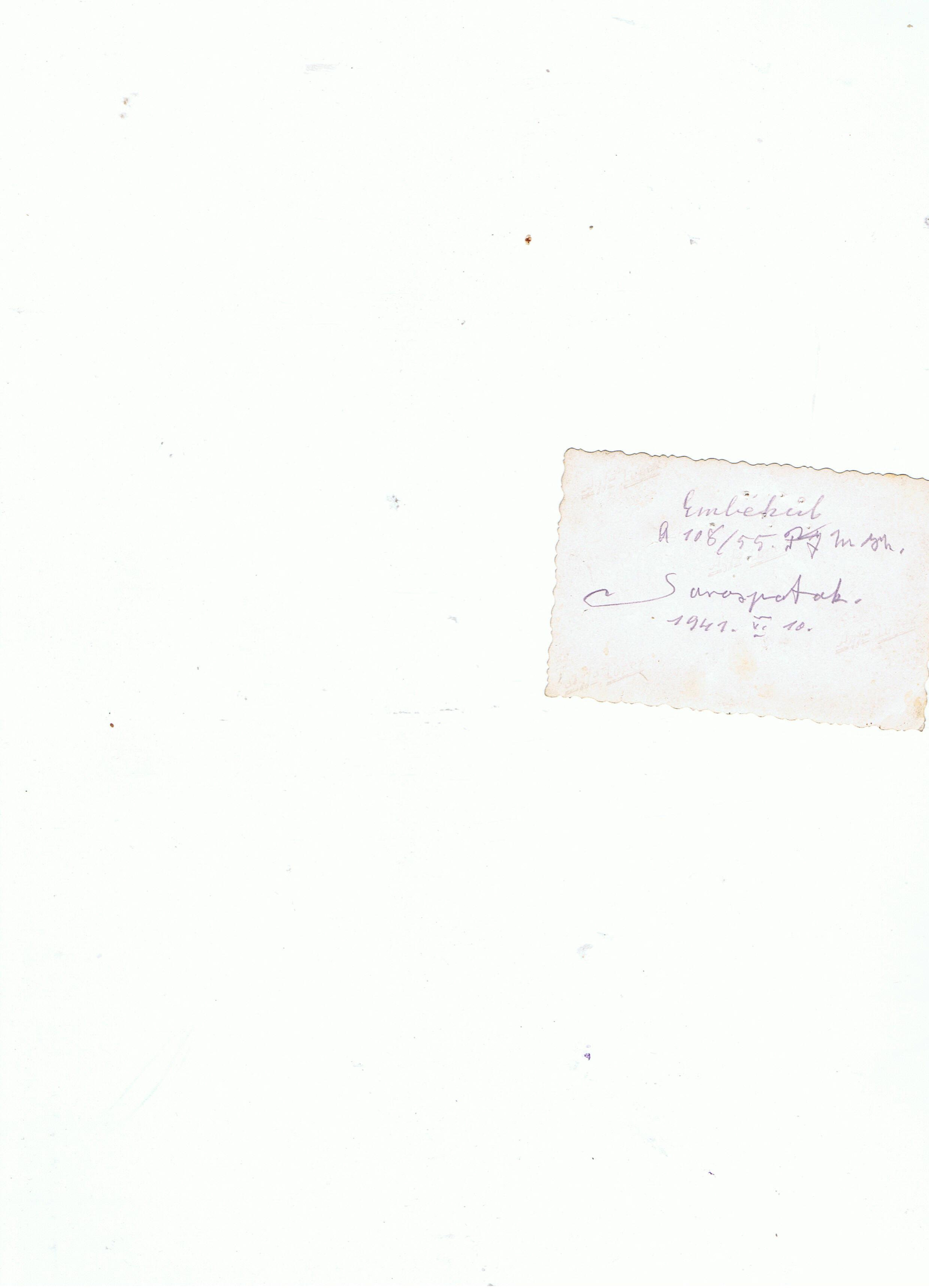 Sárospataki munkaszolgálgat 1941, fénykép hátoldalára írt szöveg