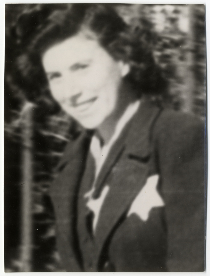 Kabátján sárga csillagot viselő nő