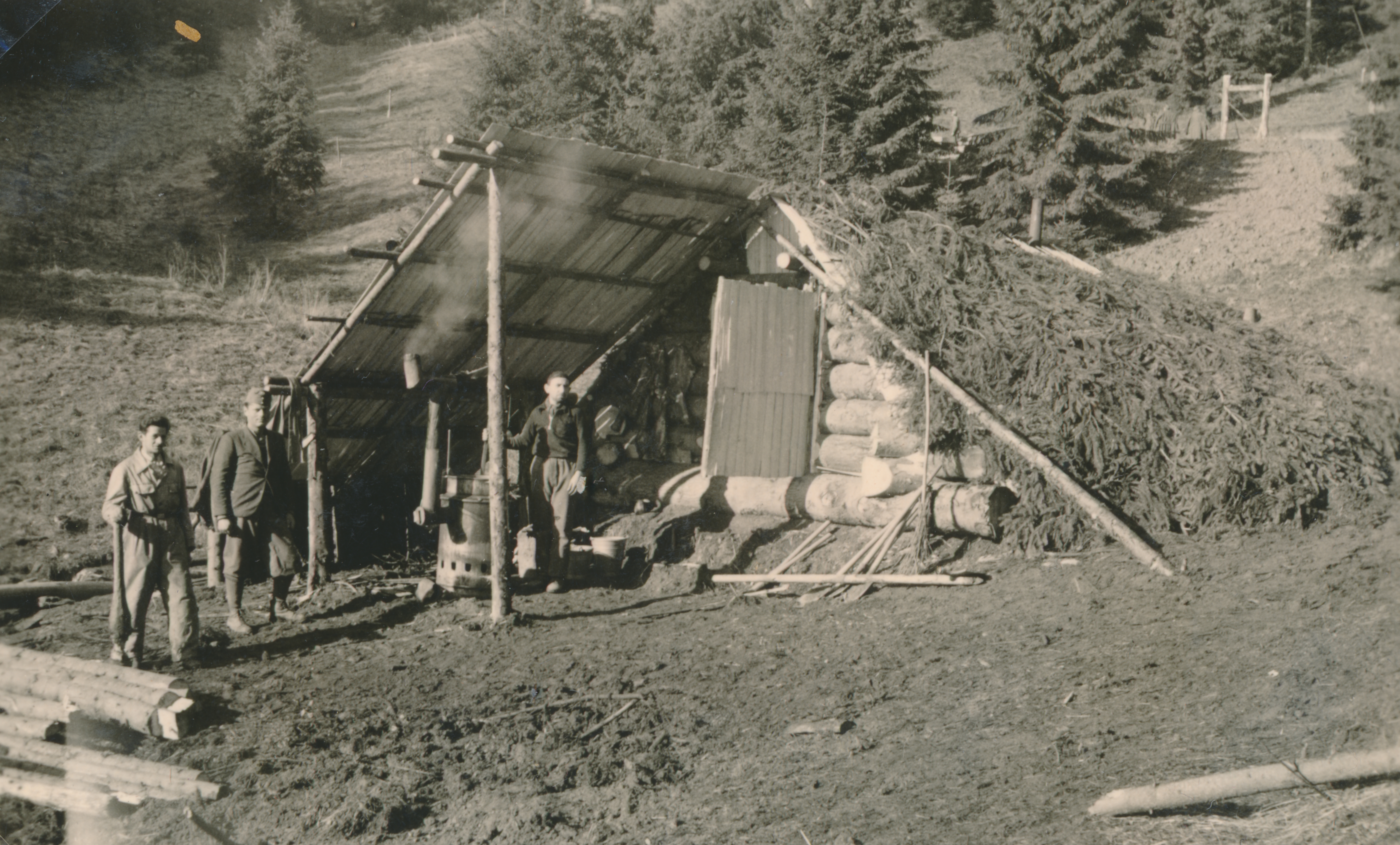 Három munkaszolgálatos a lakhelyük előtt