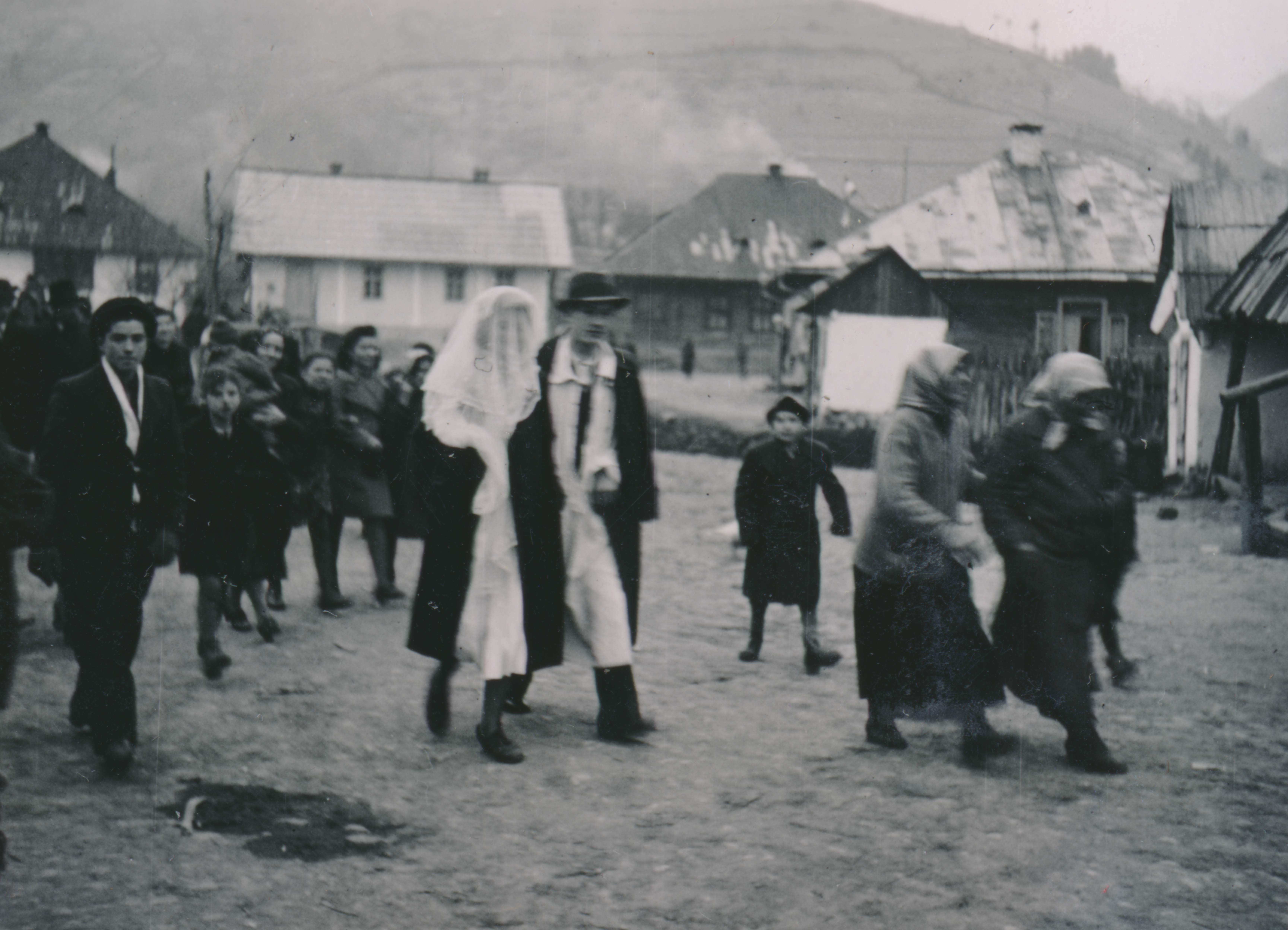 Zsidó esküvői menet egy erdélyi faluban