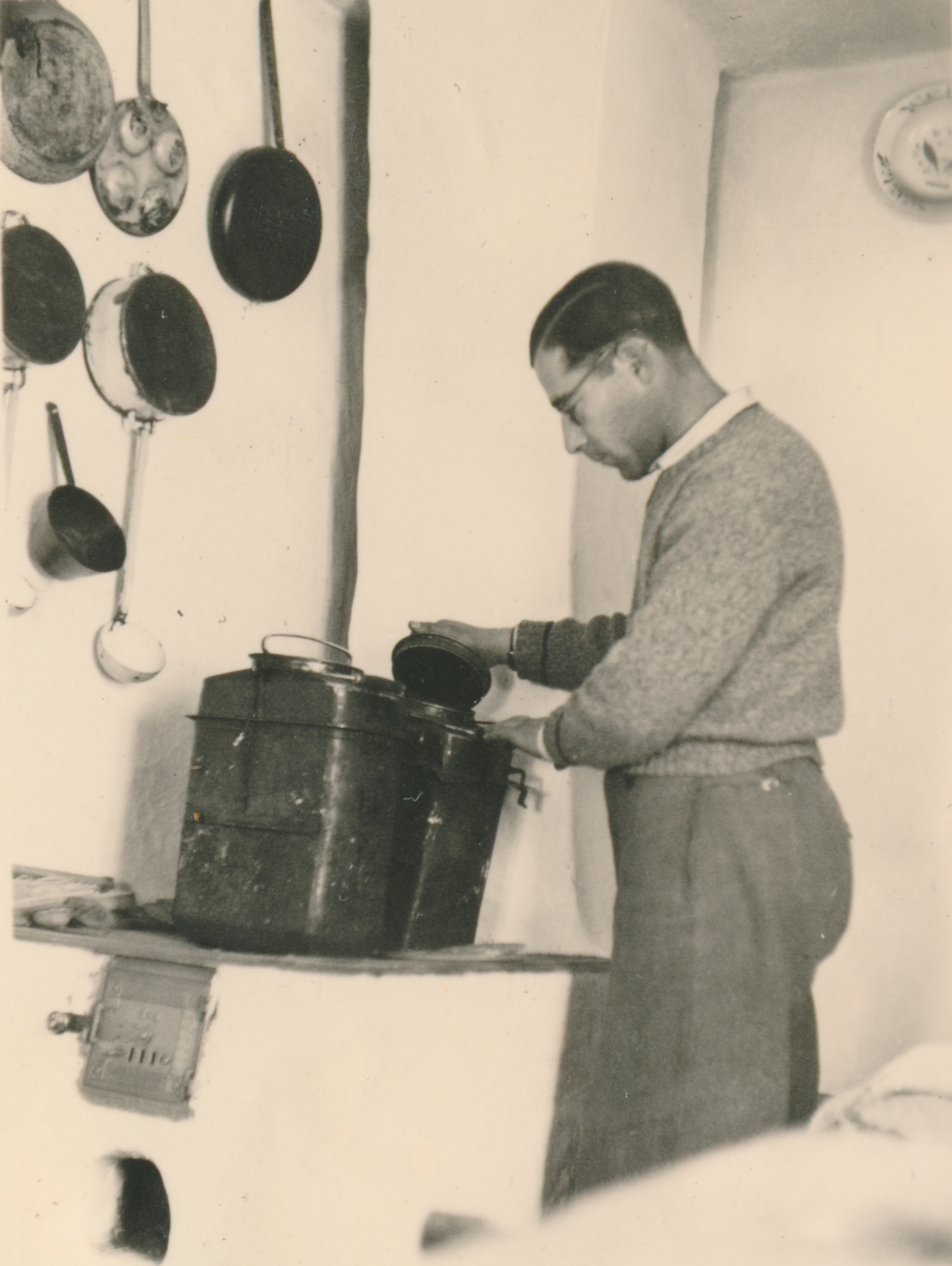 Ismeretlen munkaszolgálatos feketét főz egy tűzhelyen