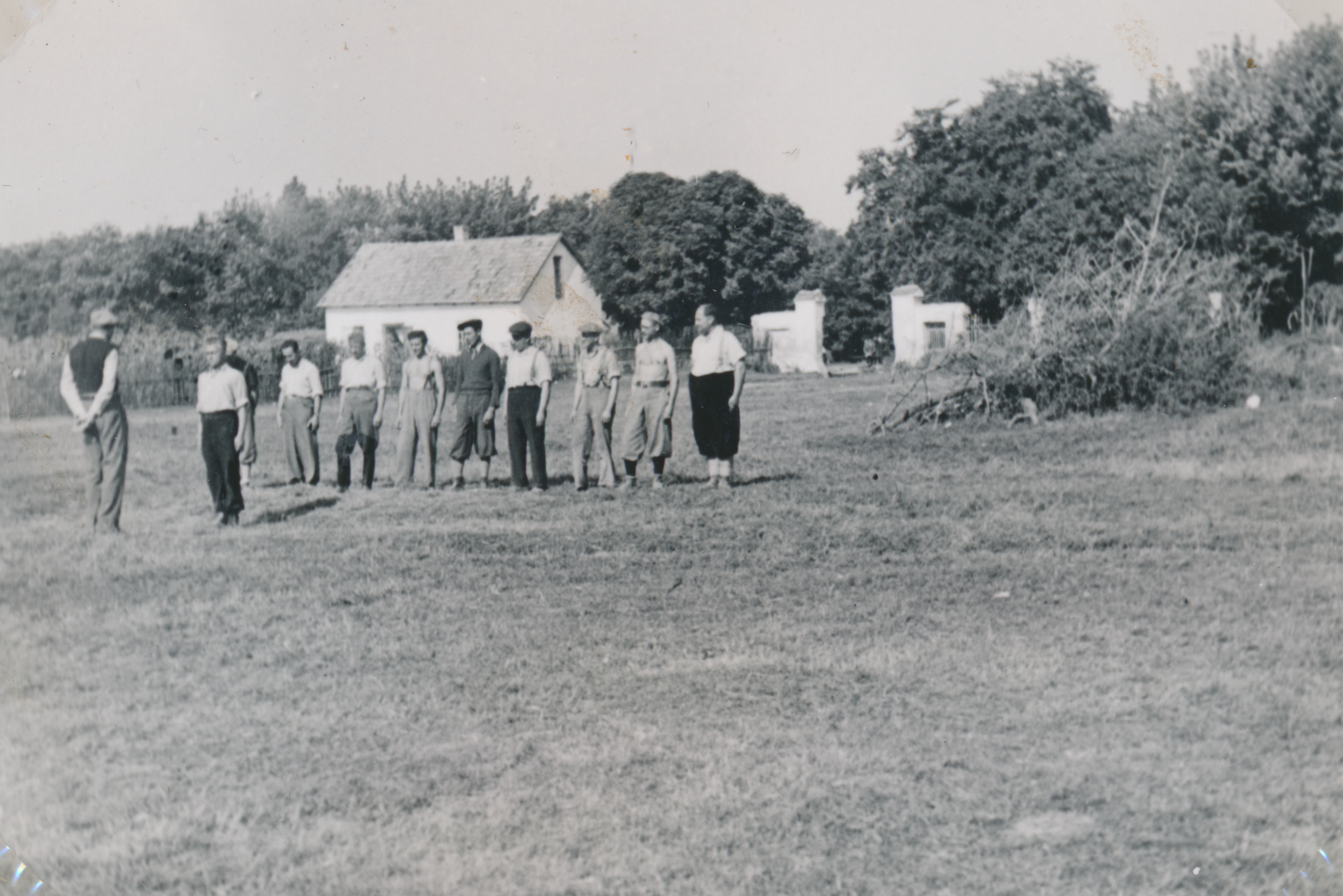 Munkaszolgálatosok gyülekezője egy mezőn Dabason