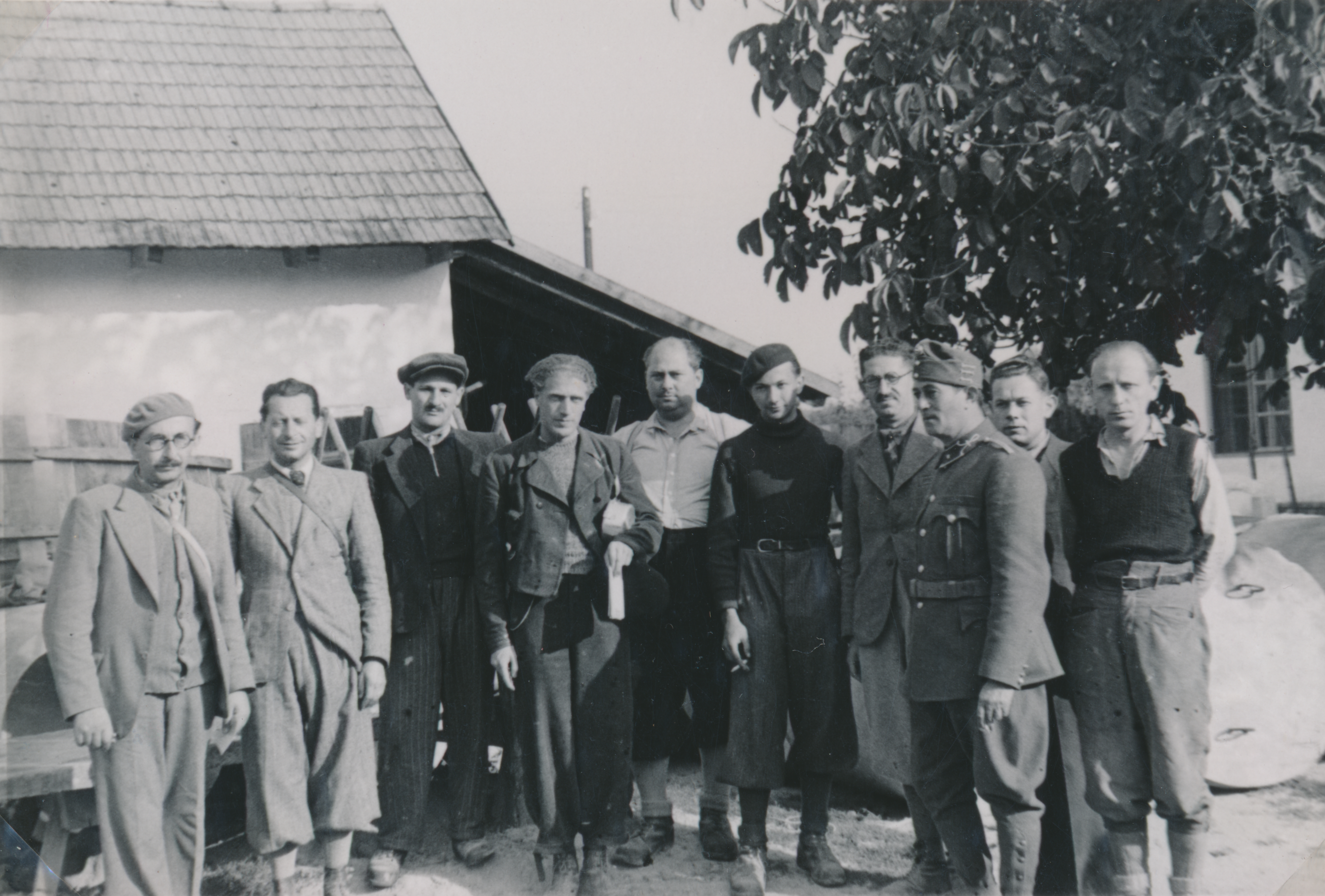 Csoportkép kilenc munkaszolgálatossal és egy tiszttel