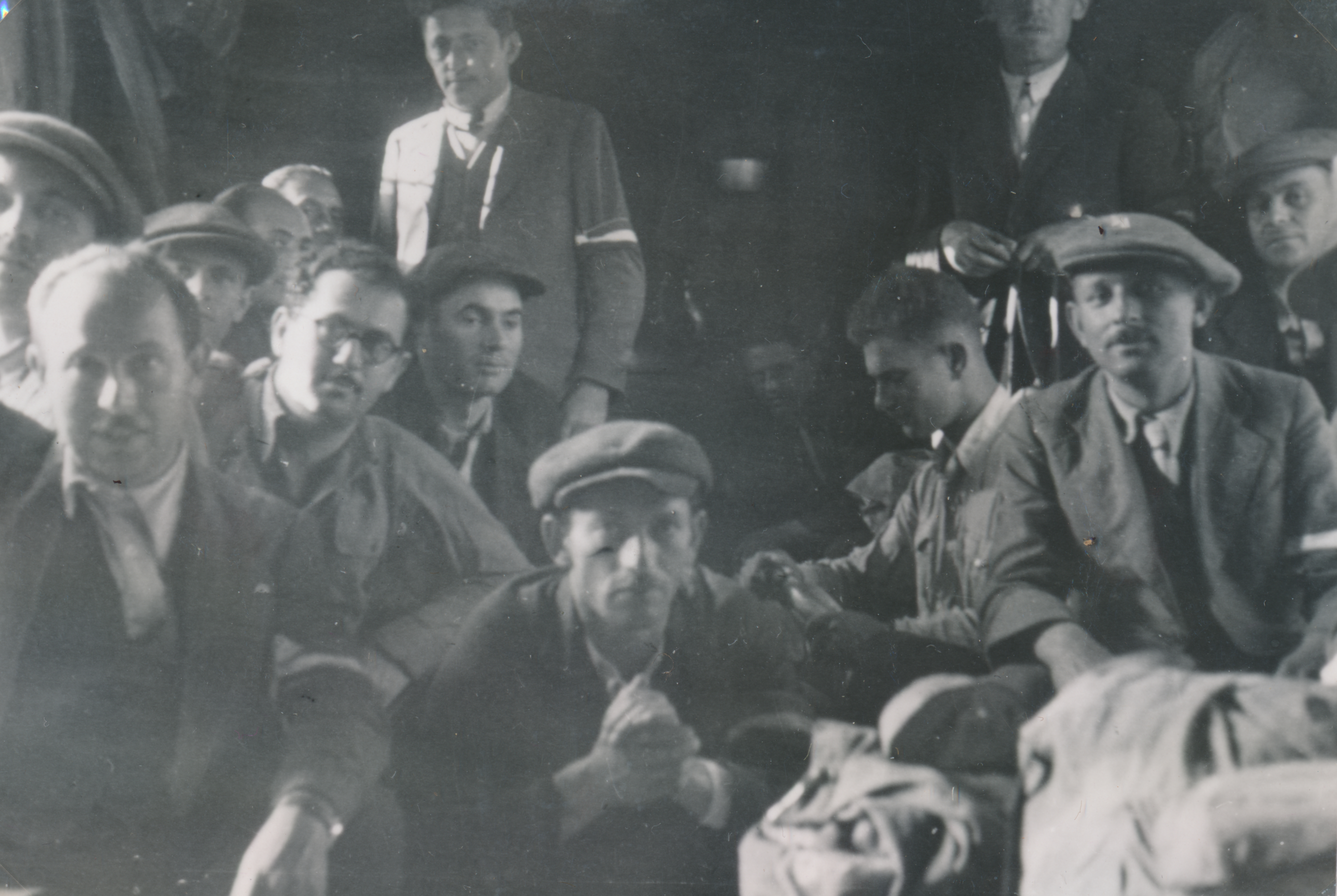 Csoportkép munkaszolgálatosokról egy marhavagonban