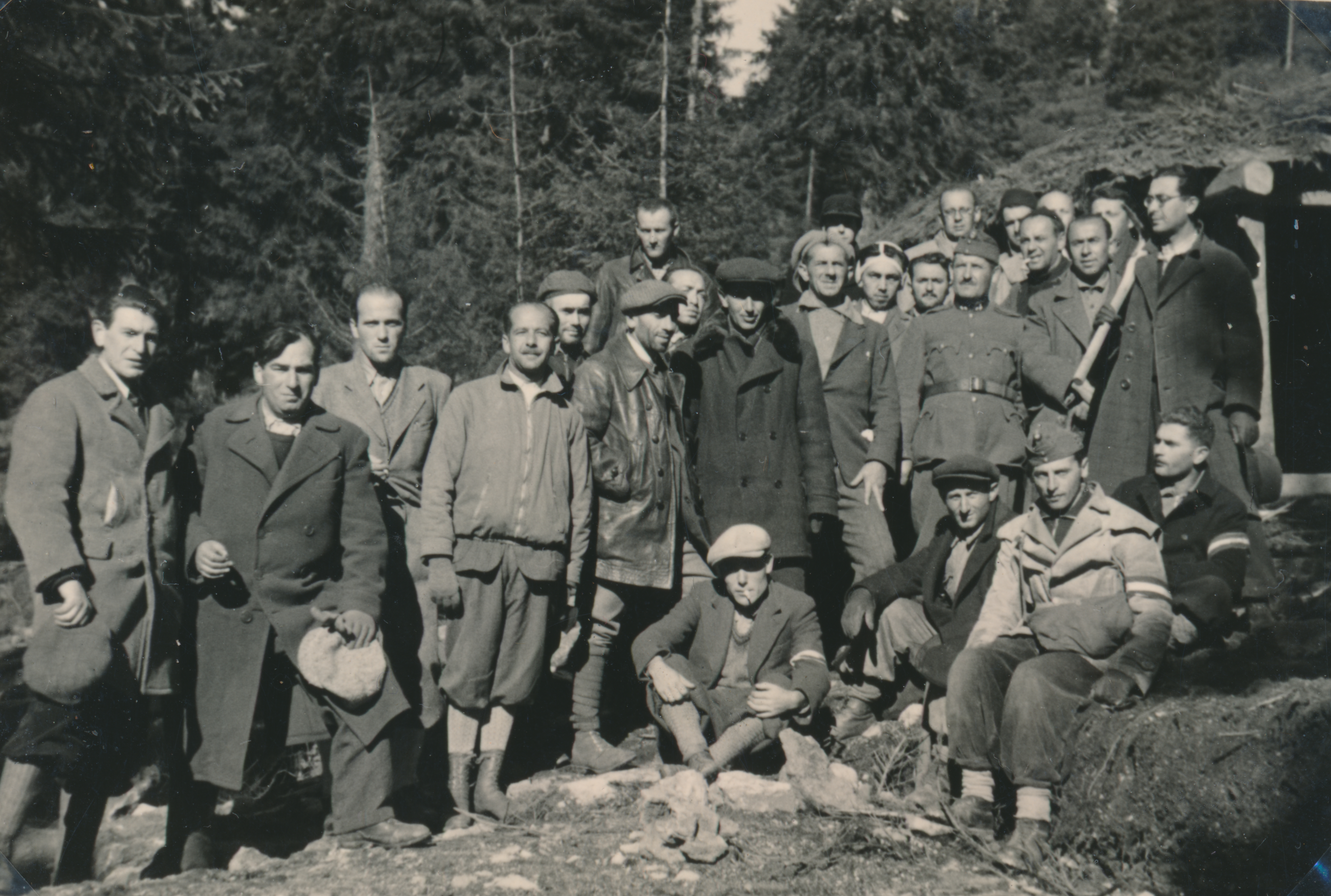 Munkaszolgálatosok Pálfalvi szakaszvezetővel elhagyott román barakkokat látogatnak