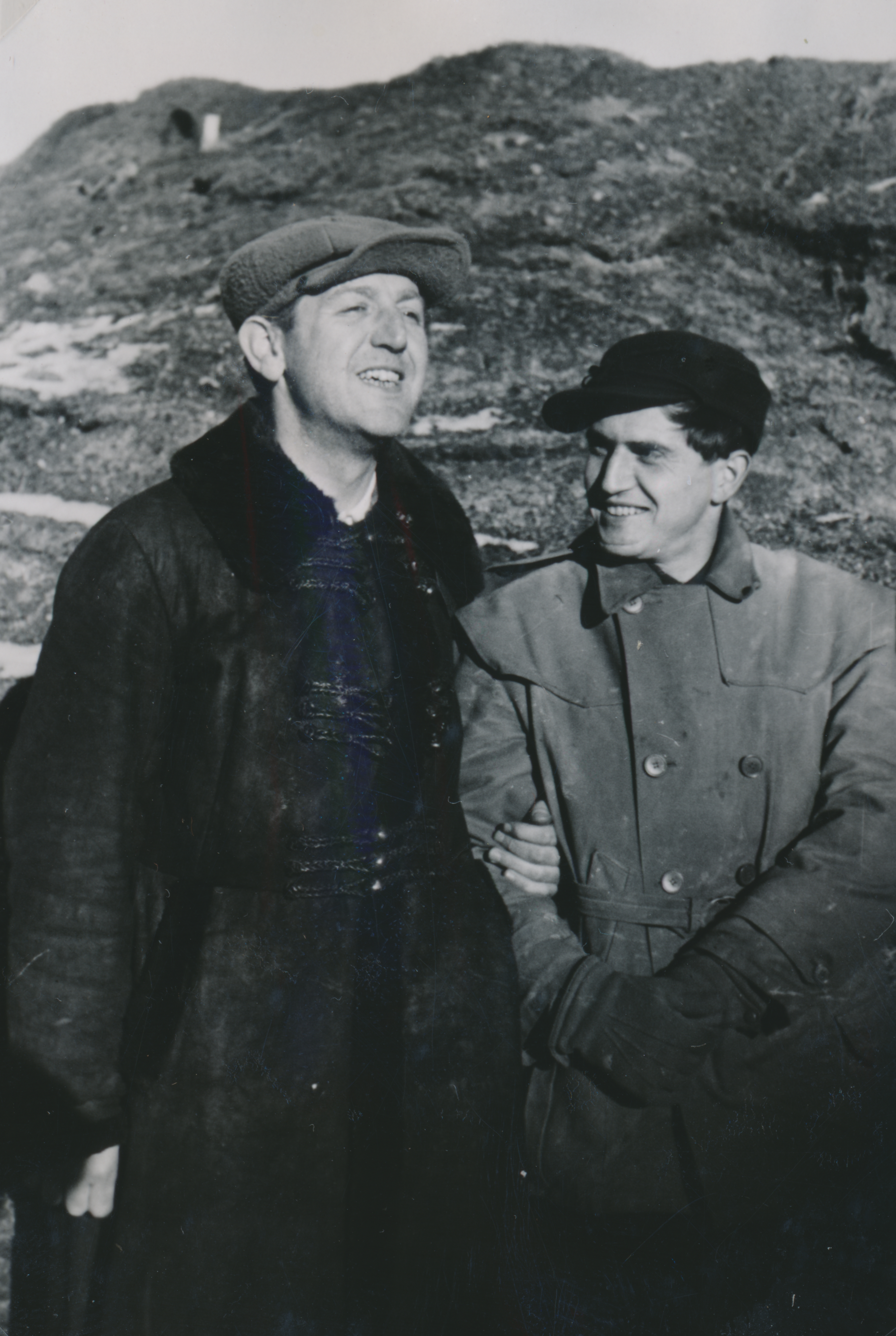 Két munkaszolgálatos egymásba karol (Az egyik Kálnoky Pál)