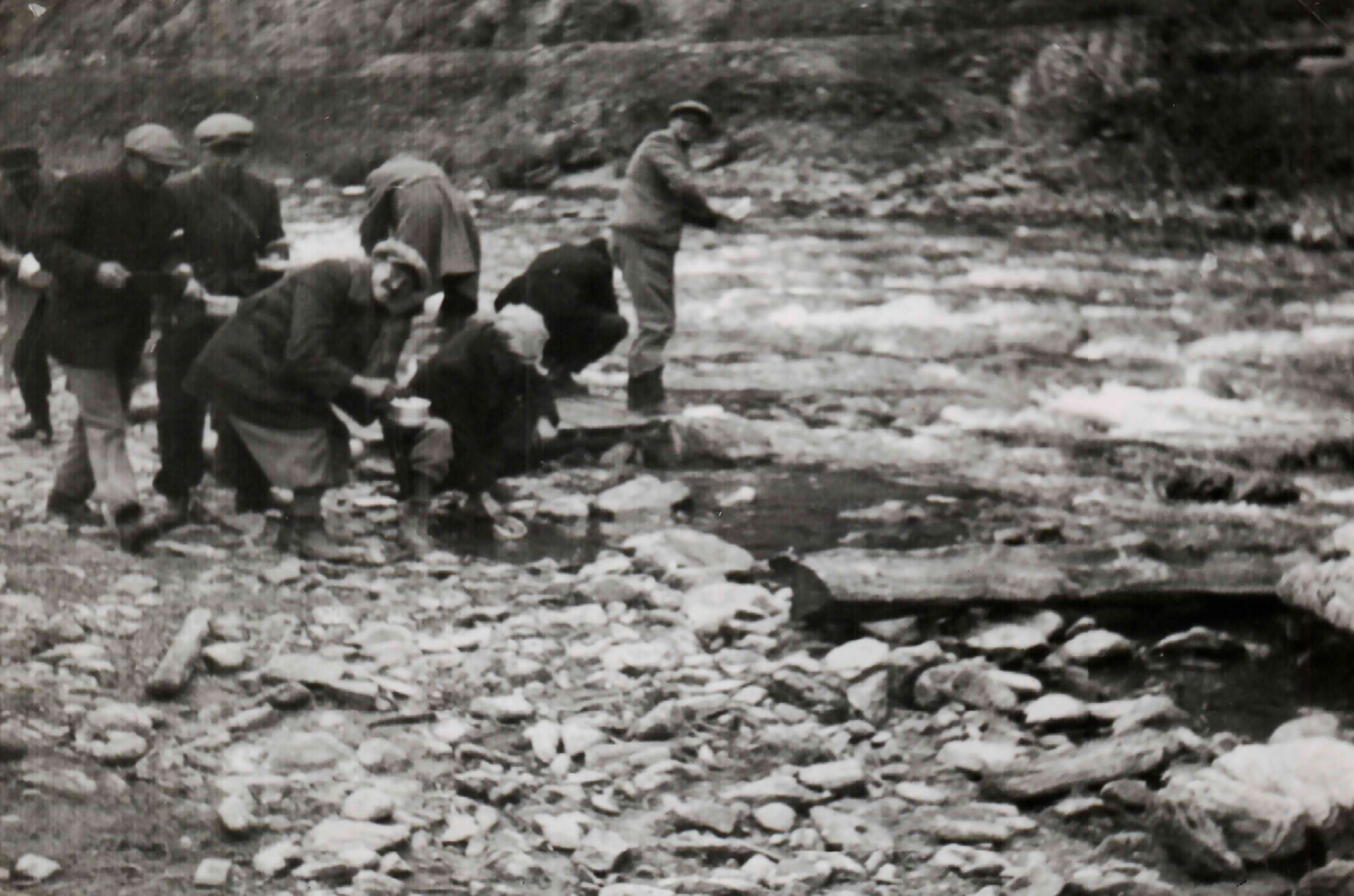 Munkaszolgálatosok mosogatnak a Vasér folyóban