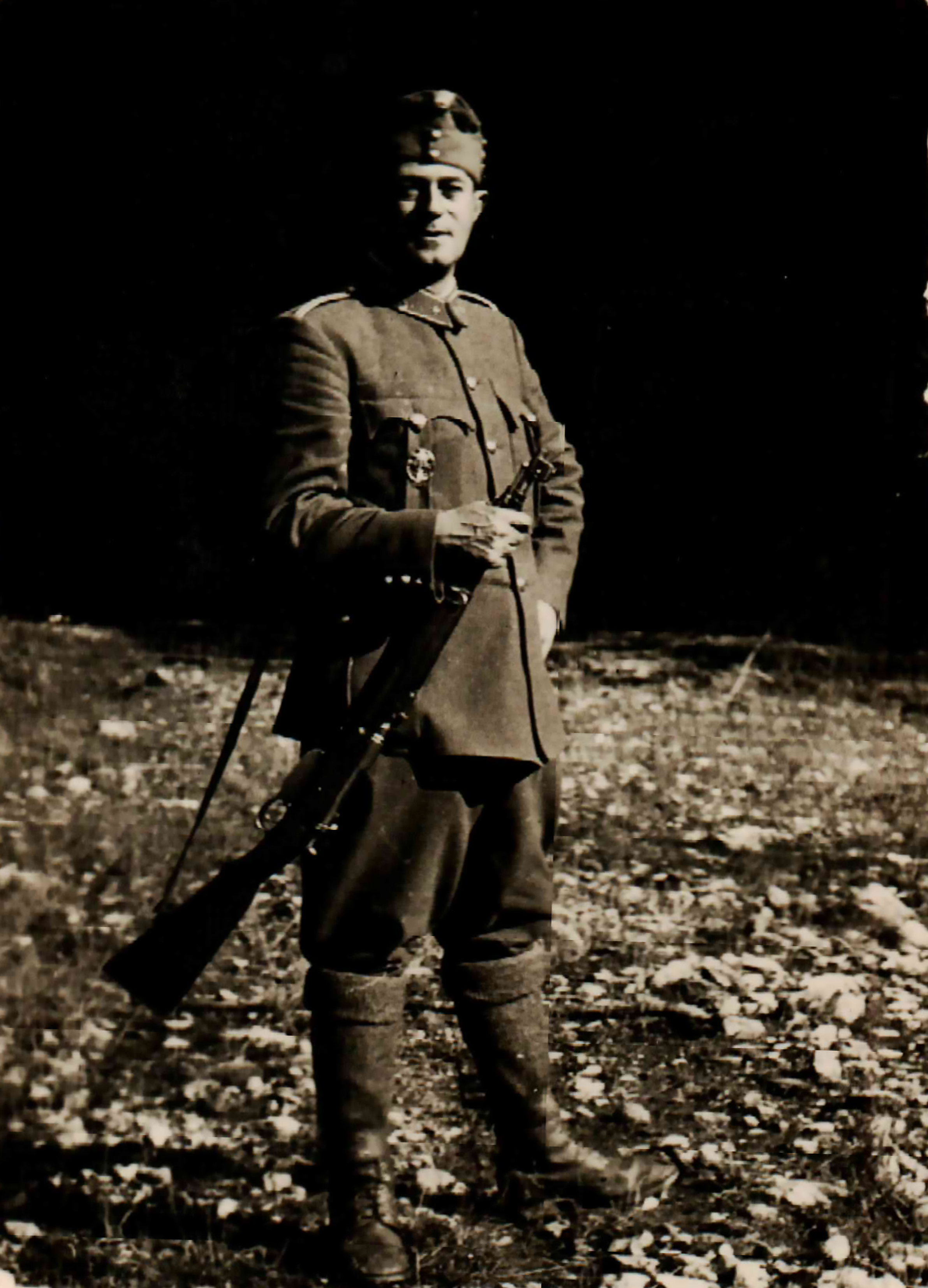Szántó Zoltán hadnagy áll puskával a kezében