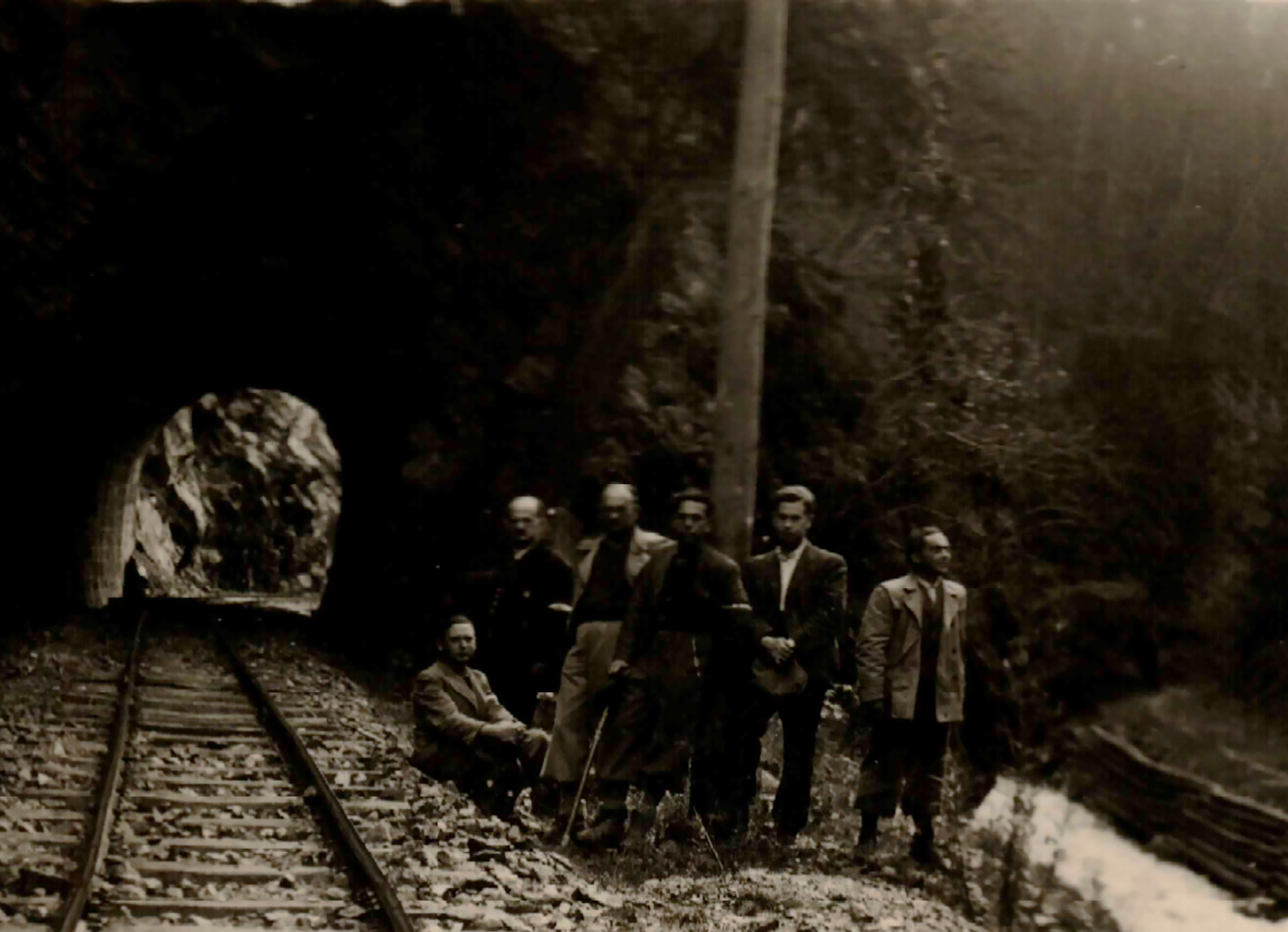 Csoportkép a munkaszolgálatosokról egy alagút mellett