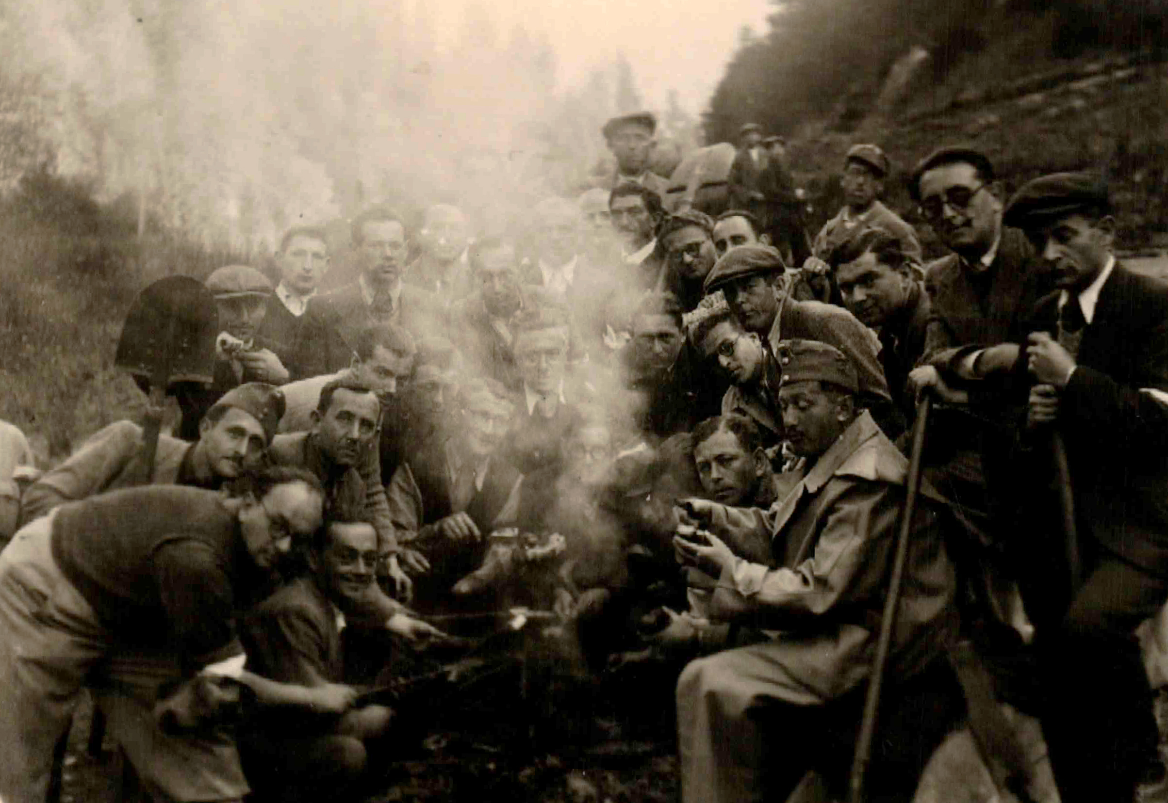 Munkaszolgálatosok pihenőn, tűzrakás közben