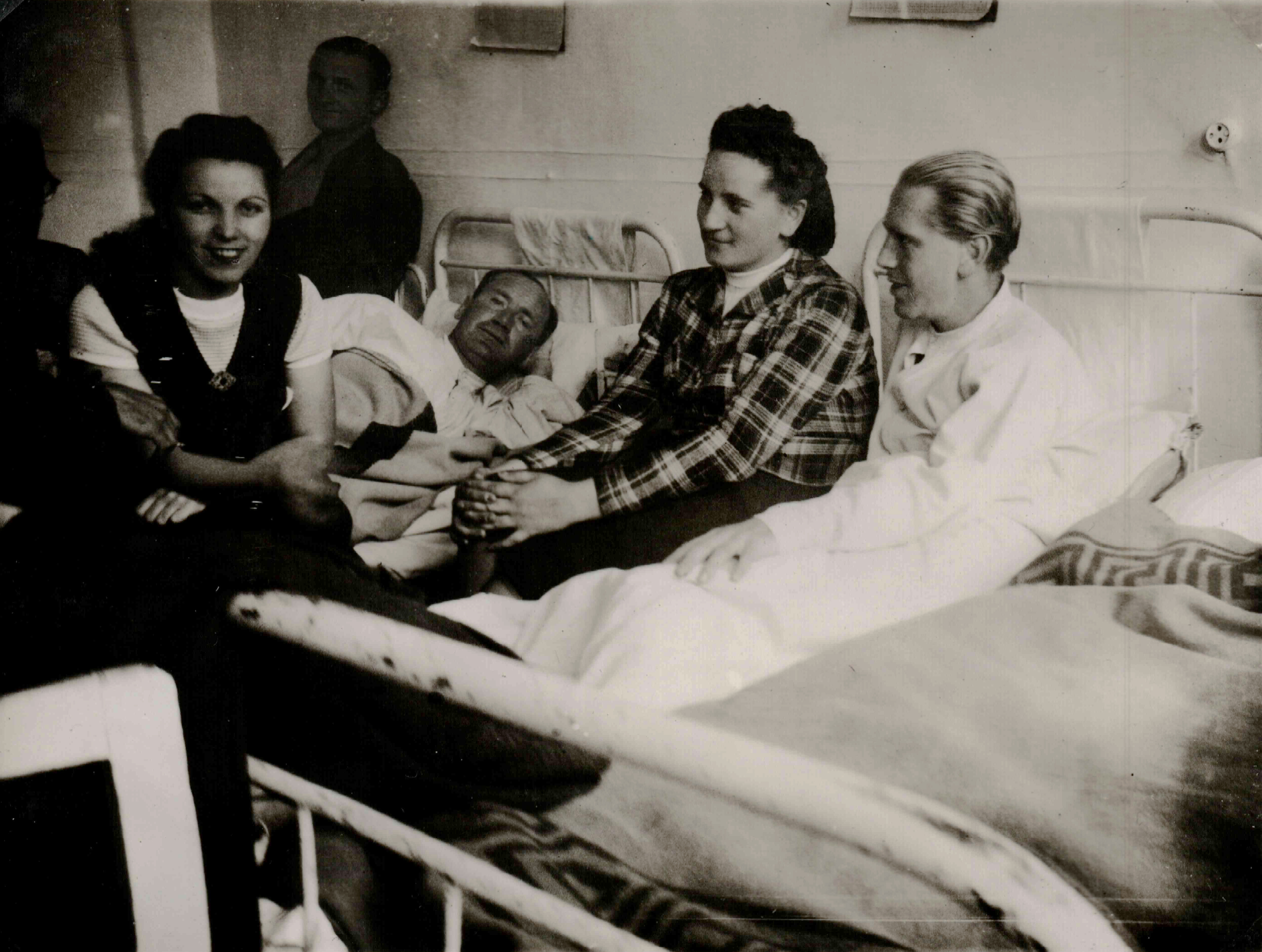 Munkaszolgálatosok a kórházban látogatóikkal I. (Jobb oldalon Szántó Ervin és Korn Médi)