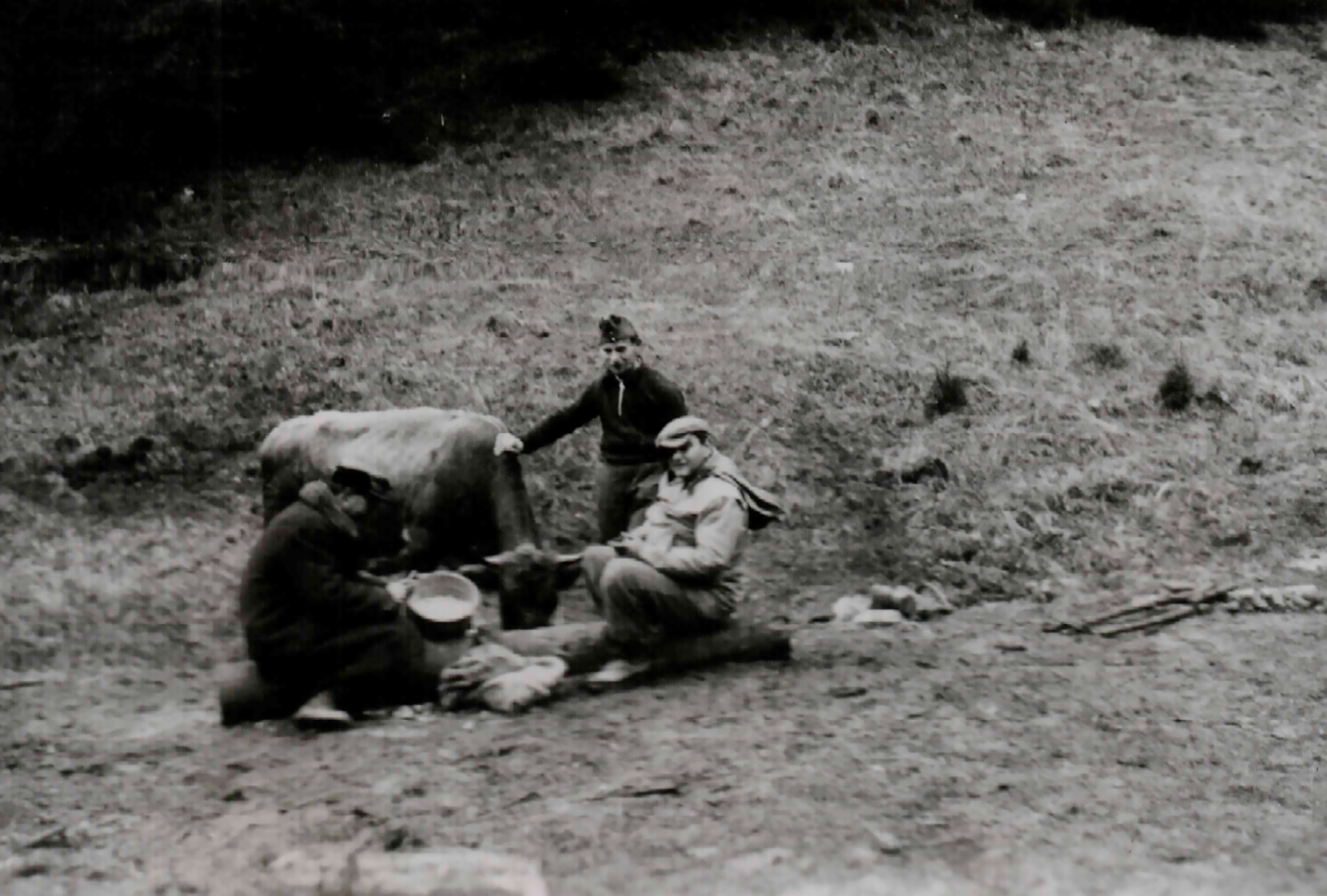 Munkaszolgálatosok tehenet fejtek