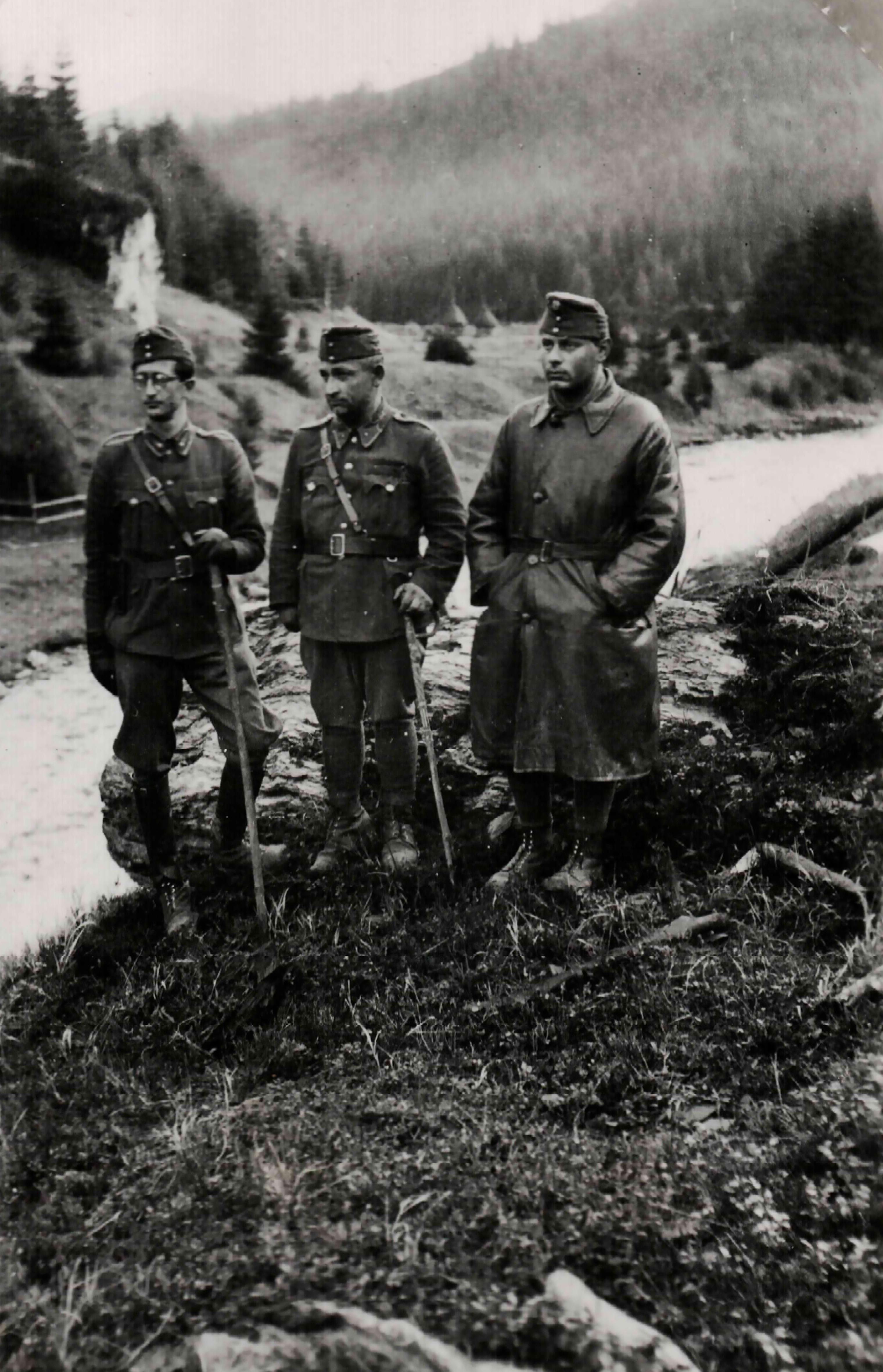 Három tiszt áll a határvadász laktanya közelében