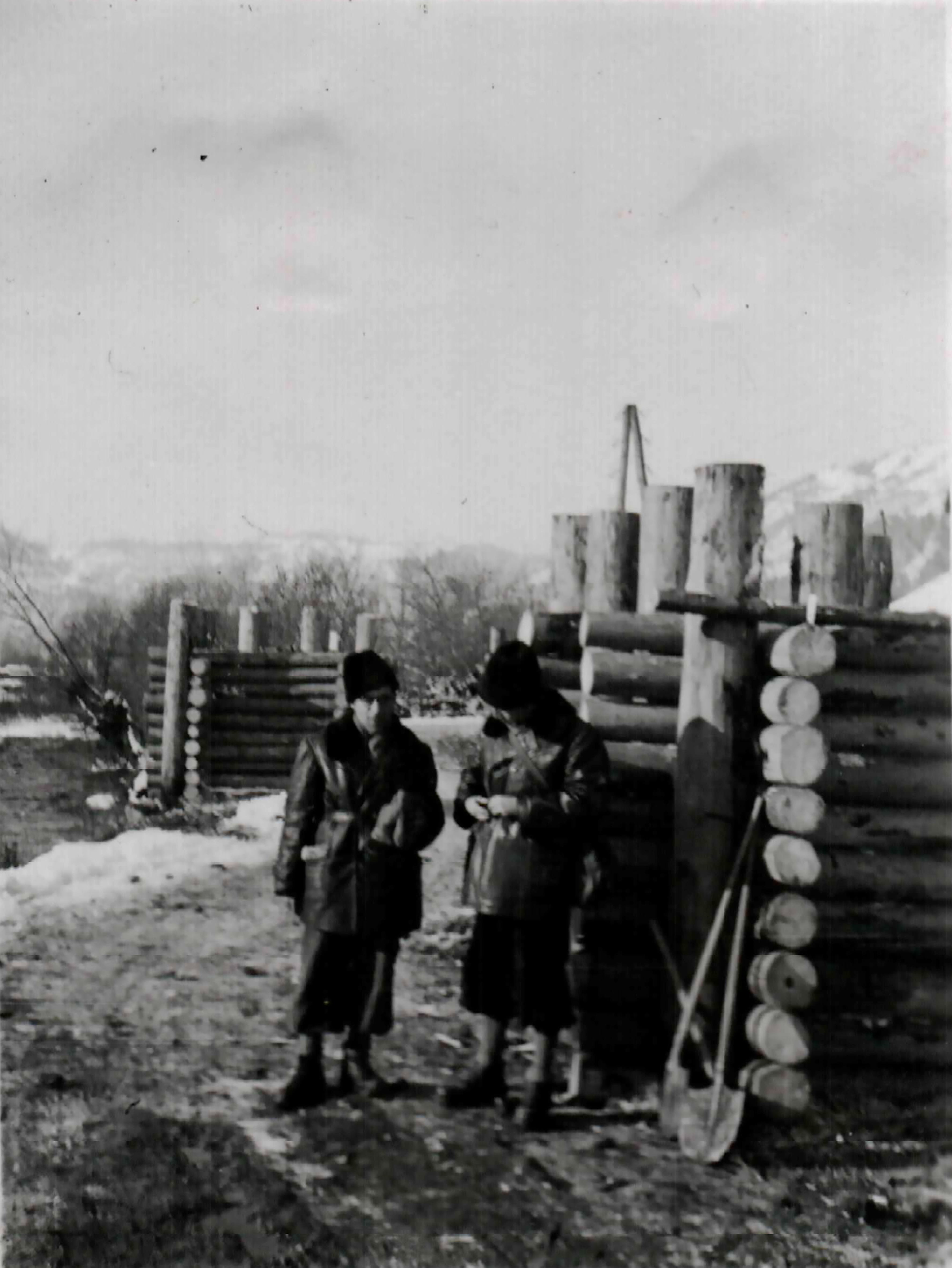 Két munkaszolgálatos egy úttorlasz mellett