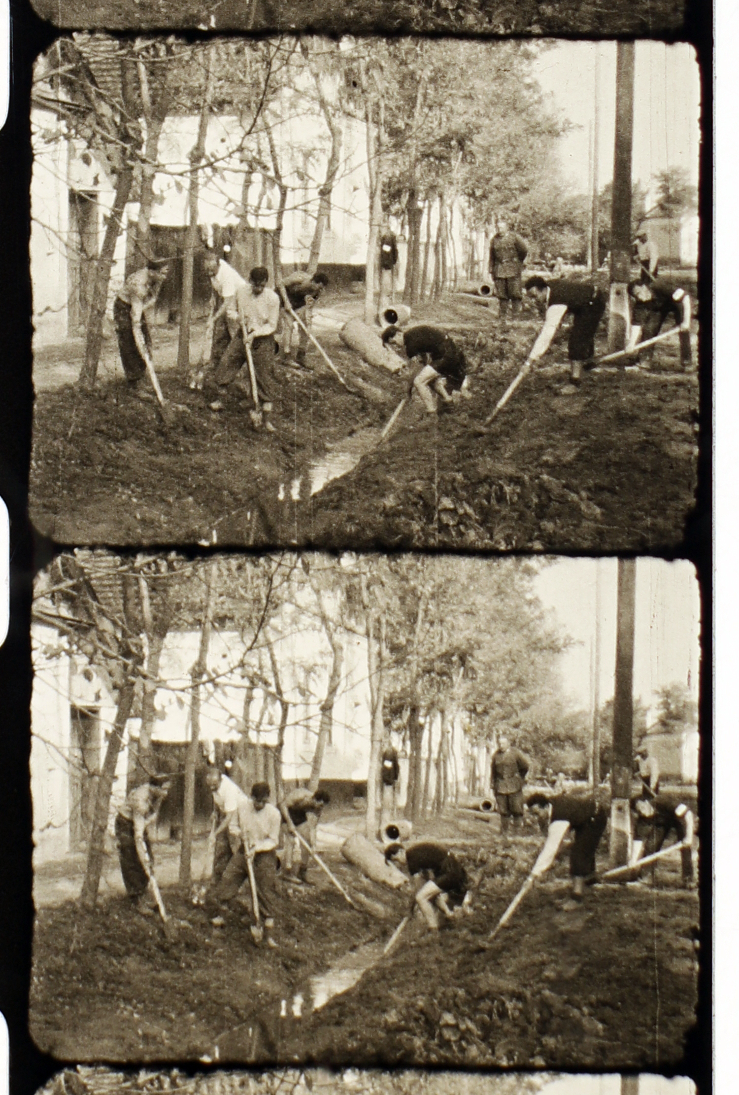 Munkaszolgálatosok árkot ásnak a csatornának