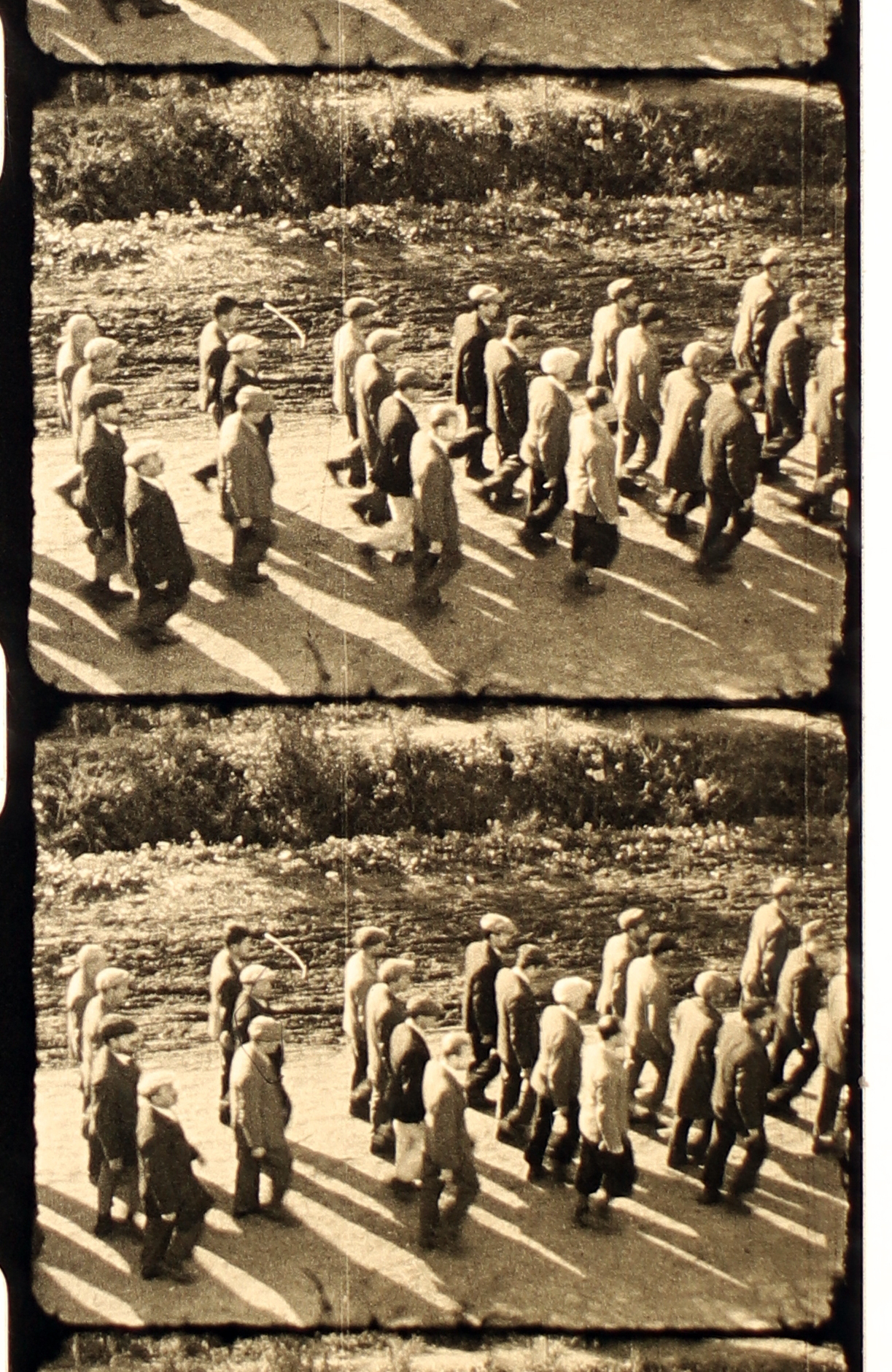 Munkaszolgálatosok menetelnek négyes sorban II.