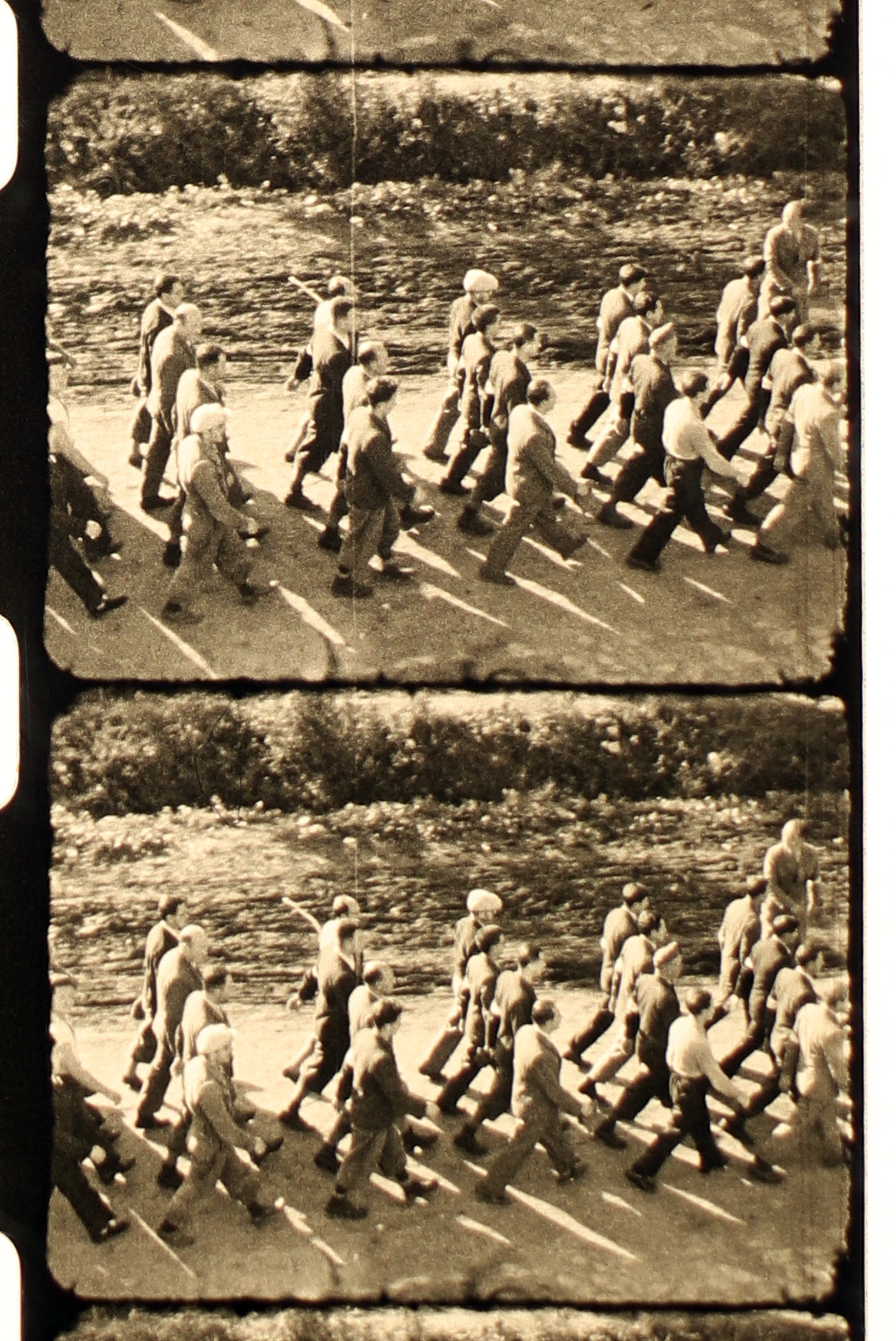 Munkaszolgálatosok menetelnek négyes sorban III.