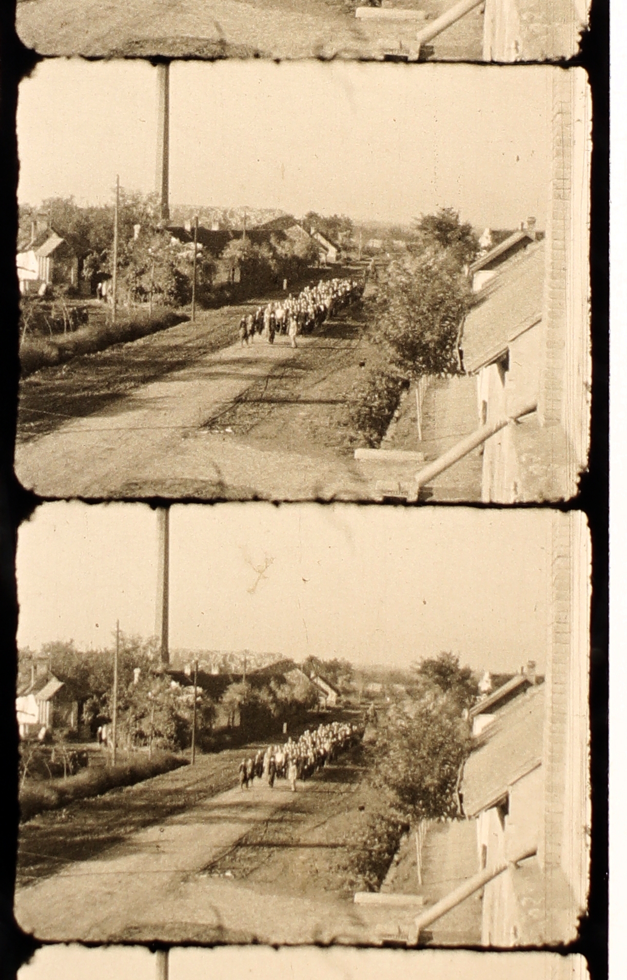 Munkaszolgálatosok menetét négy katona vezeti (távoli felvétel) IV.